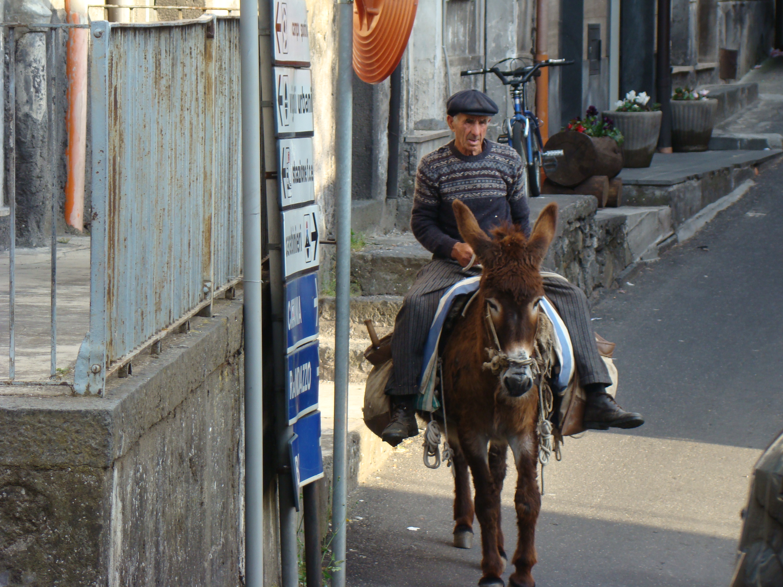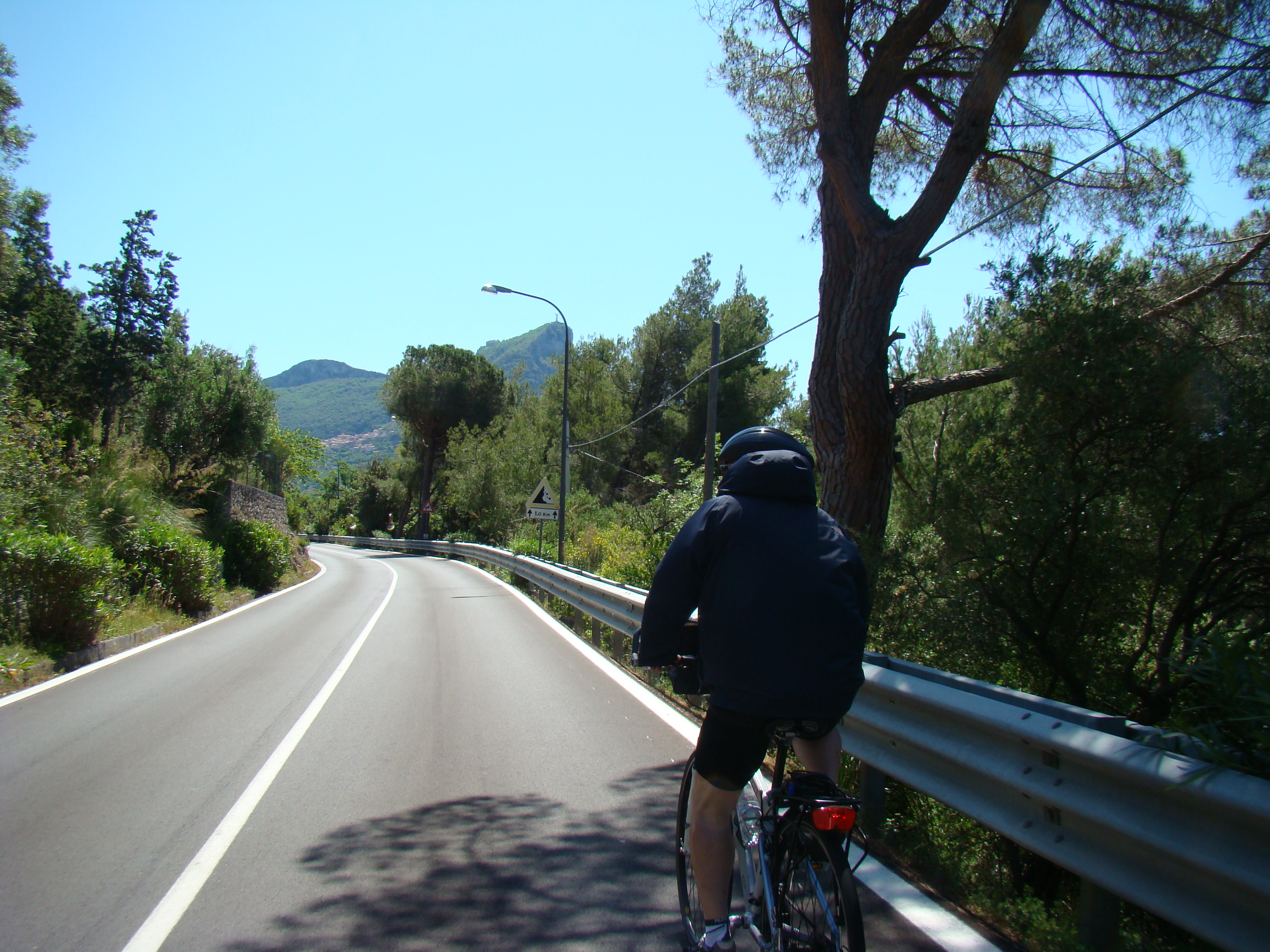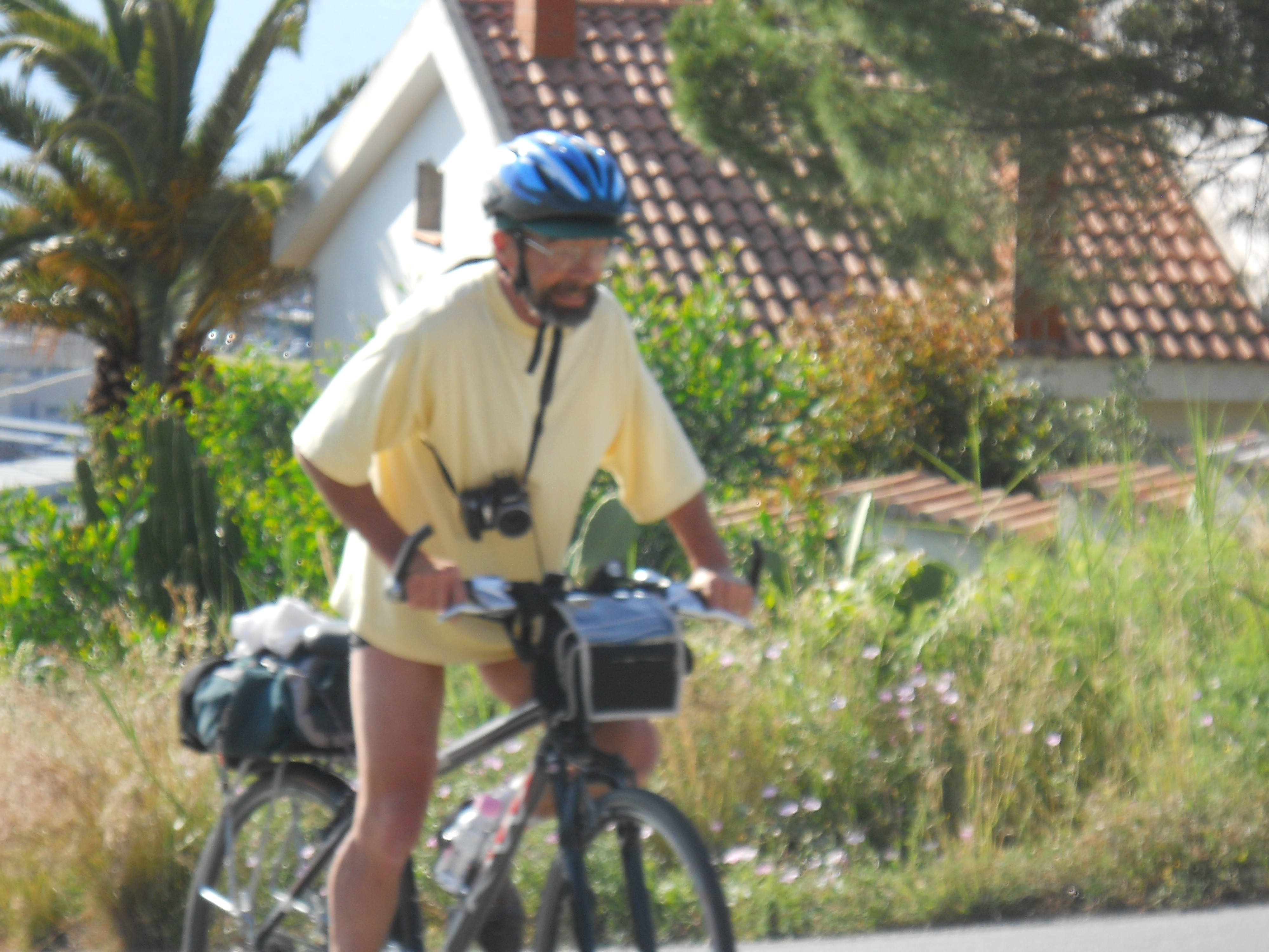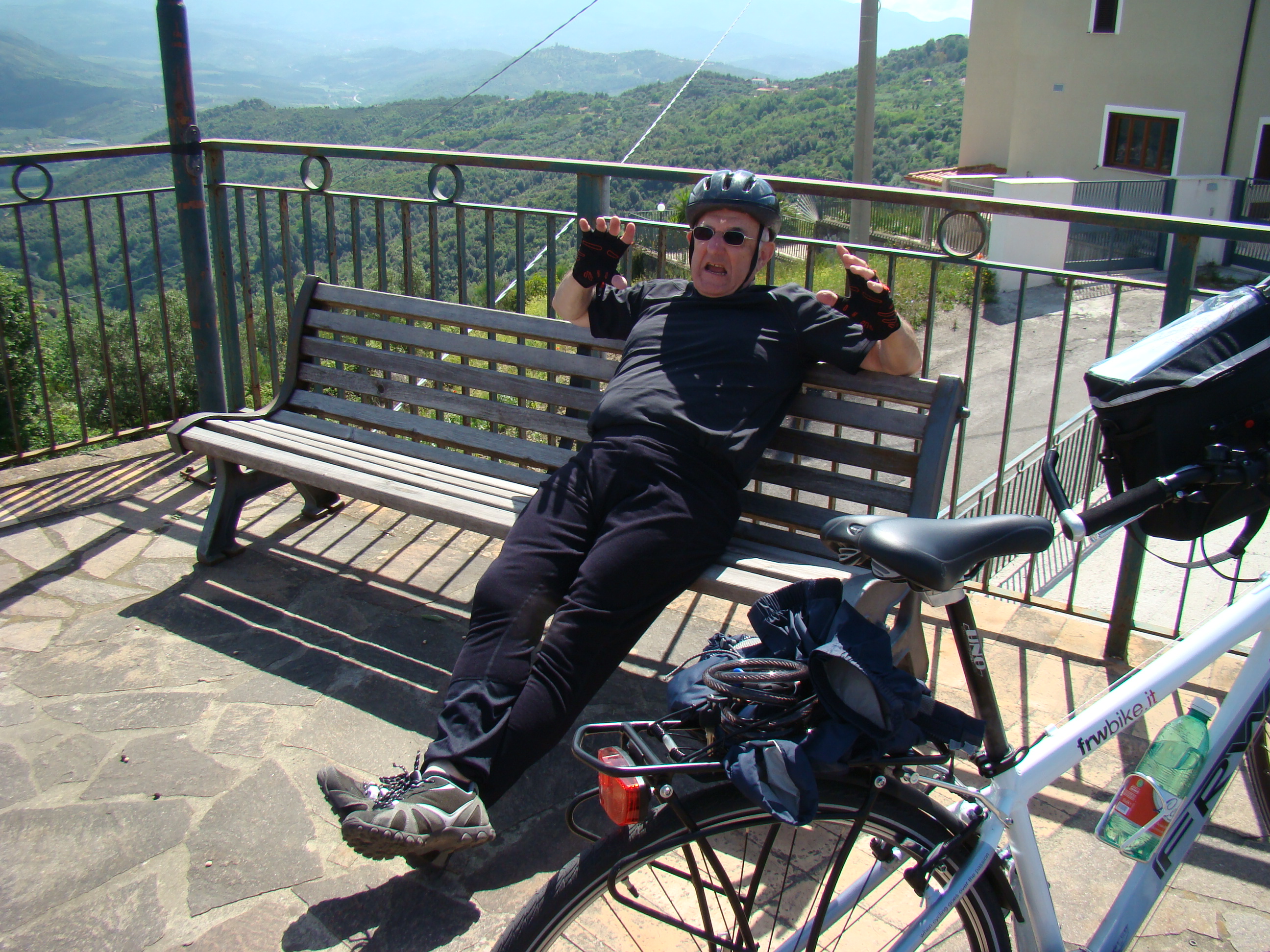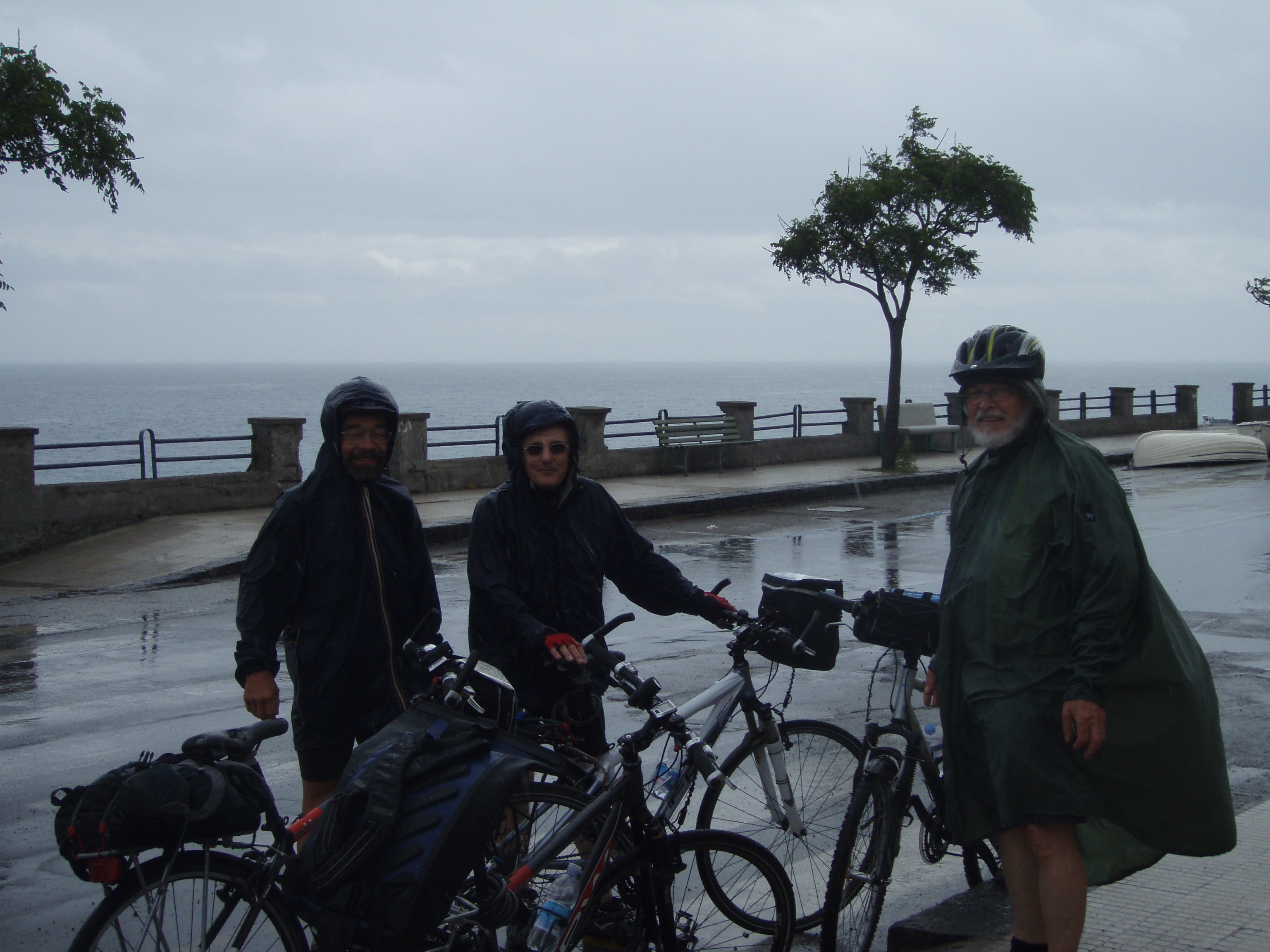Au lundi 14 mai, jour de départ du haut des 1000 mètres du Vésuve, mon journal de voyage note : « Sentiment de venir saluer la genèse du monde de la vie terrestre. Sentiment partagé par mes 3 co-équipiers, impressionnés par la grandeur des lieux et le regard d’en haut qu’ils permettent sur la baie de Naples ».Il s’en est fallu cependant de peu que ce départ ne puisse nous hausser à ce point de vue cosmique, seulement d’une heureuse combinaison in extremis des éléments! Pluie tout le début de la matinée et recherche laborieuse de la voie d’accès terrestre avec deux autos nous véhiculant avec nos vélos. Vers 11 heures, le ciel s’est dégagé, libérant le soleil. Ce feu solaire (Hill et Carlowicz, 2006), plus souvent visible lui que le feu terrestre, a éclairé et rendu accessible le foyer de son fragment enterré Ainsi grâce à cette heureuse combinaison météorologique, a pu s’amorcer la première étape de notre route initiatique : rupture de la situation antérieure par découverte d’en haut d’un haut lieu volcanique, avec entrée sur la route transitionnelle par une descente assez vertigineuse, pavée de voitures, de bus, de camions et de larges plaques de basaltes en milieux urbains. De joie maligne, mes compagnons humains m’ont obligé à embrasser les pavés de basalte, durs représentants du refroidissement des laves magmatiques sur la terre mère, au contact de l’eau ou de l’air.