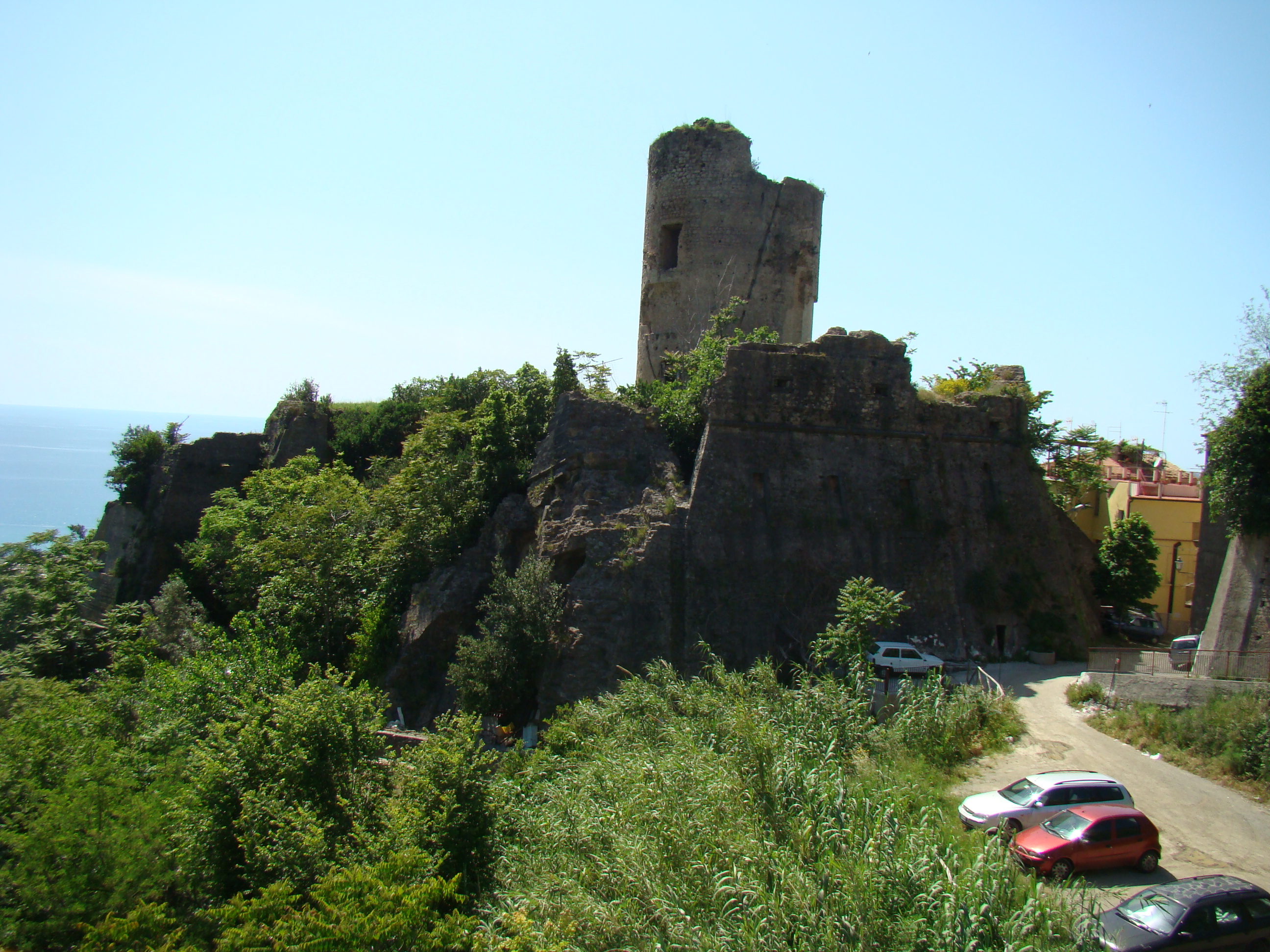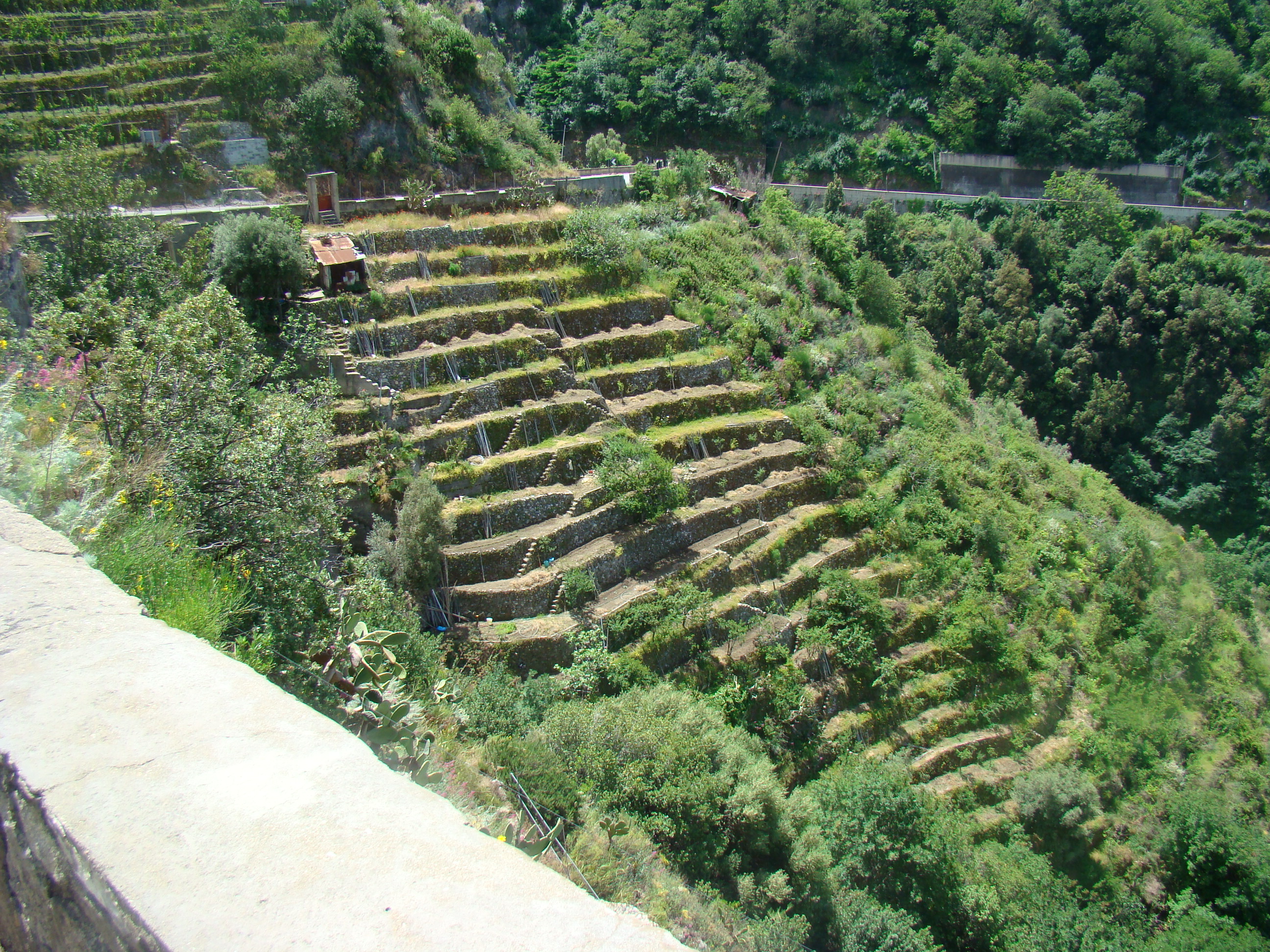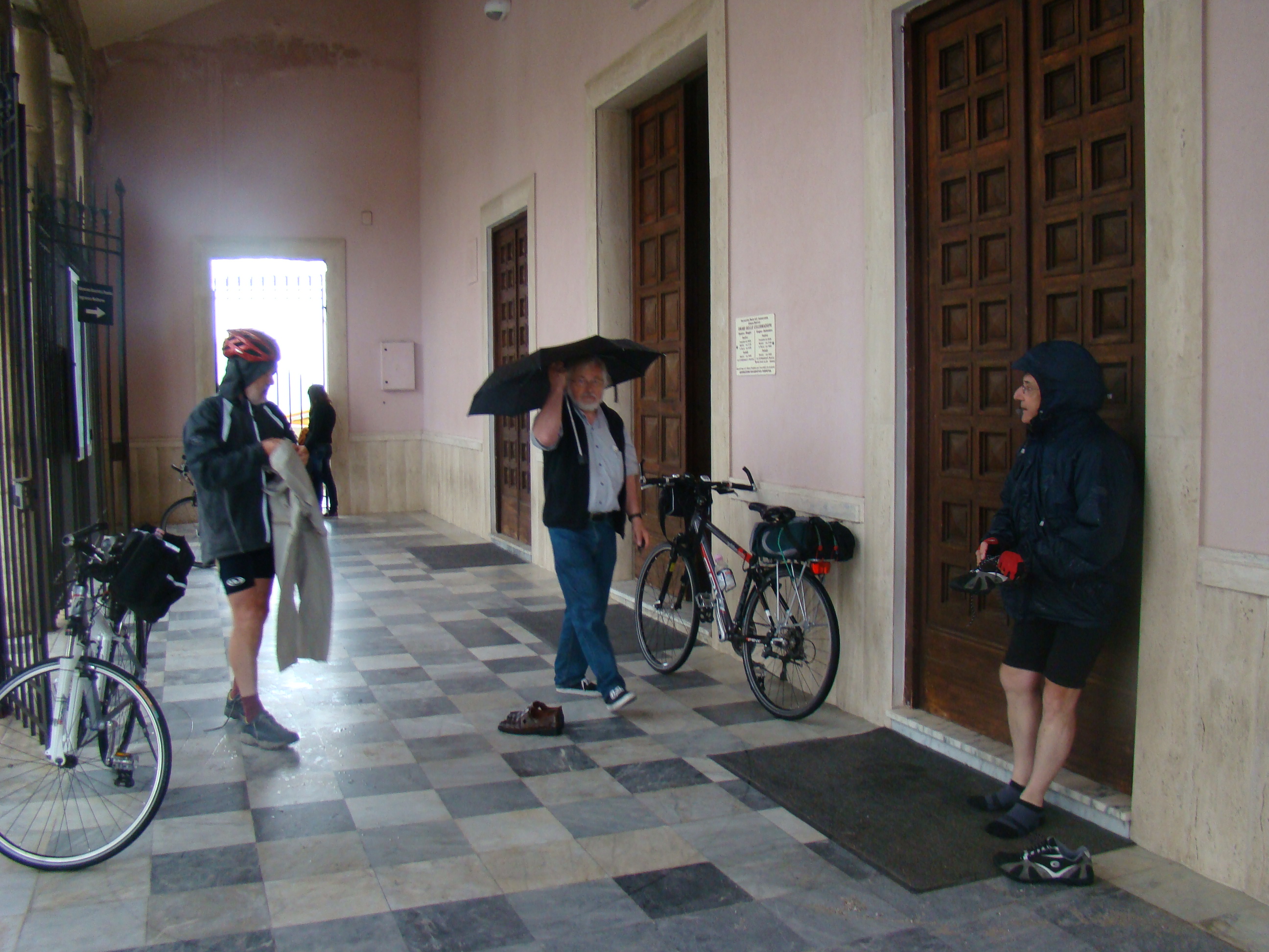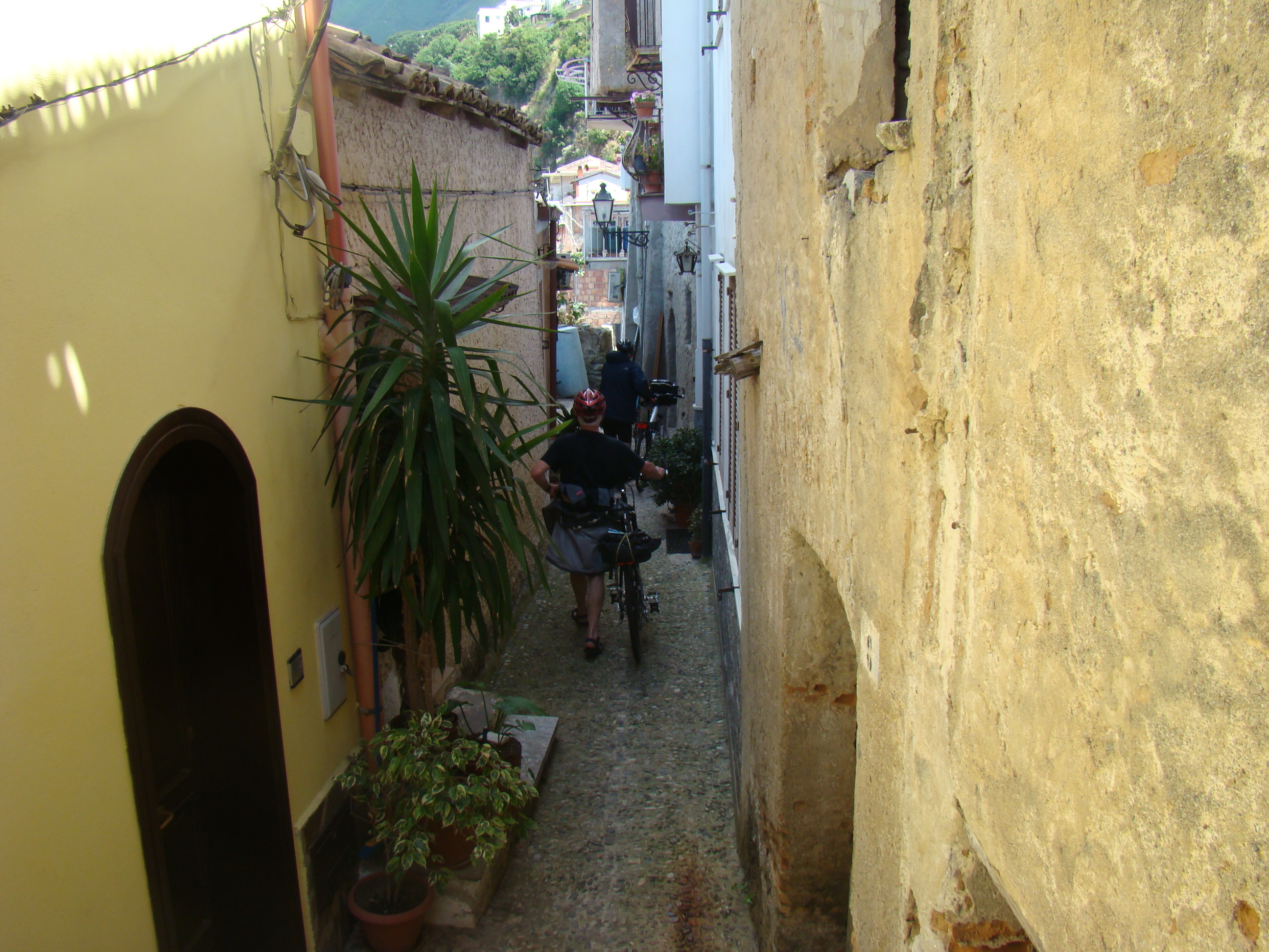 Au lundi 14 mai, jour de départ du haut des 1000 mètres du Vésuve, mon journal de voyage note : « Sentiment de venir saluer la genèse du monde de la vie terrestre. Sentiment partagé par mes 3 co-équipiers, impressionnés par la grandeur des lieux et le regard d’en haut qu’ils permettent sur la baie de Naples ».Il s’en est fallu cependant de peu que ce départ ne puisse nous hausser à ce point de vue cosmique, seulement d’une heureuse combinaison in extremis des éléments! Pluie tout le début de la matinée et recherche laborieuse de la voie d’accès terrestre avec deux autos nous véhiculant avec nos vélos. Vers 11 heures, le ciel s’est dégagé, libérant le soleil. Ce feu solaire (Hill et Carlowicz, 2006), plus souvent visible lui que le feu terrestre, a éclairé et rendu accessible le foyer de son fragment enterré Ainsi grâce à cette heureuse combinaison météorologique, a pu s’amorcer la première étape de notre route initiatique : rupture de la situation antérieure par découverte d’en haut d’un haut lieu volcanique, avec entrée sur la route transitionnelle par une descente assez vertigineuse, pavée de voitures, de bus, de camions et de larges plaques de basaltes en milieux urbains. De joie maligne, mes compagnons humains m’ont obligé à embrasser les pavés de basalte, durs représentants du refroidissement des laves magmatiques sur la terre mère, au contact de l’eau ou de l’air.