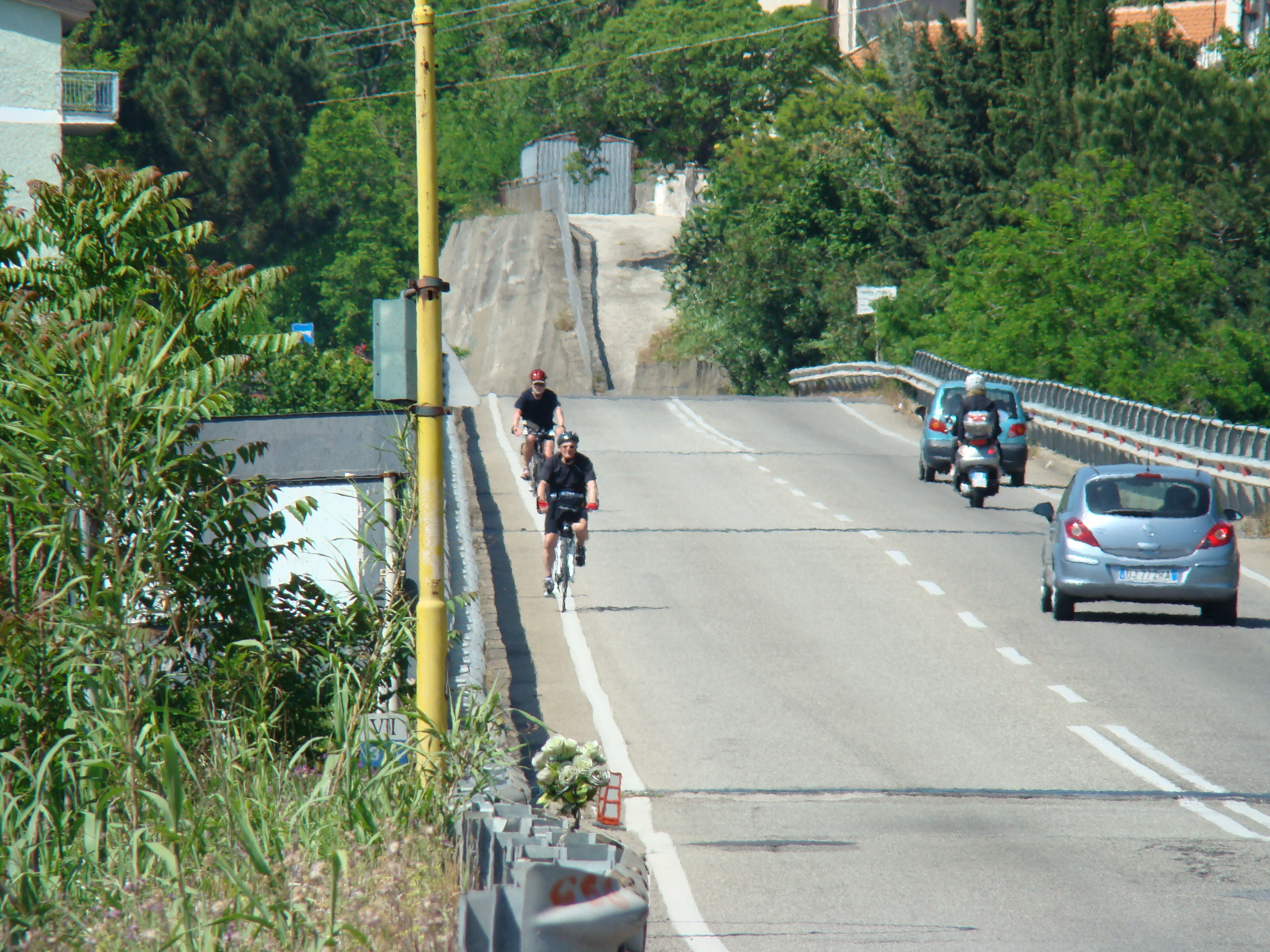 Gaston nous intègre dans sa réflexion en nous demandant de communiquer nos expériences quotidiennes dans le court texte que nous publions chaque soir dans le blogue. Gérard fait la synthèse de nos réflexions et rédige; il sélectionne des photos qu’il a prises durant la journée et met le tout en ligne, en temps réel. Comme je maîtrise la langue italienne, je prends contact avec les gens du pays et fais le lien entre mes collègues et les résidants des patelins où nous faisons halte. Bernard scrute le trajet de chaque étape en choisissant les meilleures routes à prendre, car notre circuit se déroule en grande partie en terrain montagneux.