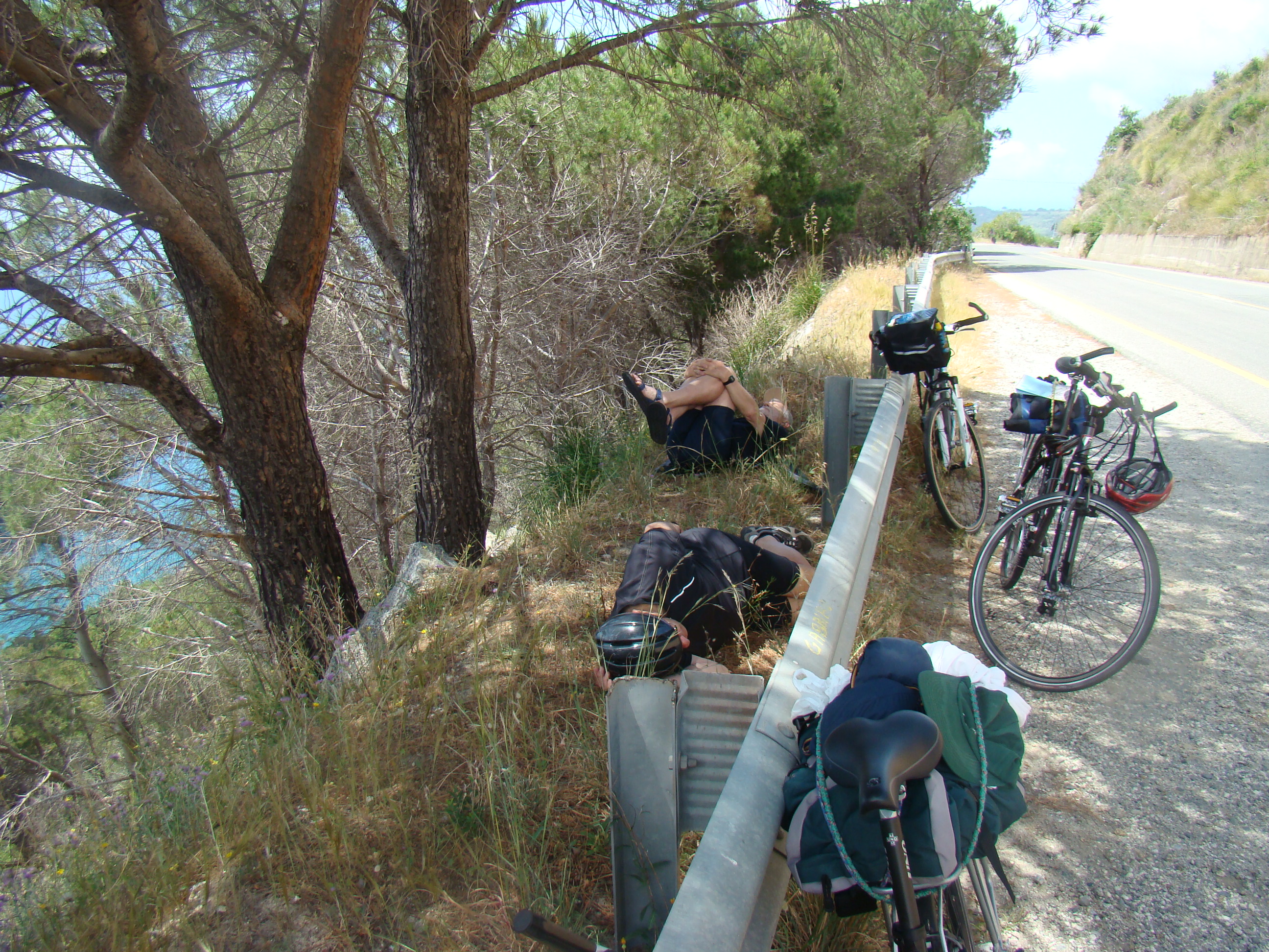 Deux opérations principales construisent, selon Anne Cauquelin, la transformation symbolique d’un pays en paysage : « Le cadrage, par quoi nous soustrayons au regard une partie de la vision; et le jeu de transport avec les quatre éléments dont se constitue pour nous la nature » (Cauquelin, 2000,p.120). Ces deux opérations d’ailleurs semblent bien se lier par un couplage soudain et surconscient entre les trois pôles auto-, socio-, et écoformateurs, co-créant une unité formelle se détachant de fonds micro et macrocosmiques. Entre le dôme majestueux du Vésuve se détachant d’un ciel dégagé, celui, inespéré, du Stromboli à mi-route et celui de l’Etna qui a su se faire attendre jusque dans les derniers kilomètres, les jeux de palettes toujours mouvantes et changeantes d’une côte exceptionnelle entre mer, terre, air et soleil, nous ont fait expérimenter l’environnement qui a fait surgir d’Empédocle sa théorie cosmogonique. En respirant, transpirant, se baignant, montant, descendant, visionnant, buvant, mangeant, réfléchissant, parlant…et écrivant. Chaque soir, le quadricycle se réunissait pour exprimer et imprimer sur le blog collectif de voyage, les impressions majeures de la journée. Opérations de dialogues et de réflexions qui a fait expérimenter aussi, après les 4 éléments d’Empédocle, les deux forces contraires qui selon lui, les unissent ou les divisent en une cosmogénèse ou un éclatement de monde: l’amitié ou l’hostilité.
