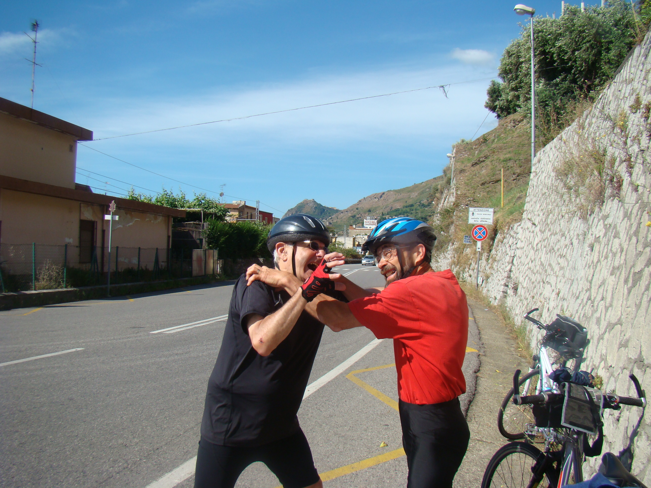 Ce projet de Route du feu, Vésuve-Etna sur les traces de Bachelard et d’Empédocle, est né en février 2008 à Salernes, entre Gaston Pineau et Paolo Longo, directeur-fondateur de l’Association Salernoise de cyclotourisme écoculturel. Il ne s’est réalisé qu’en mai 2012, du 11 au 30, avec quatre personnes, Gérard Gigand, Bernard Heneman, Michel Maletto et Gaston Pineau. Le nom de famille de Michel vient de la plus haute localité habitée du massif de l’Etna, Maletto, d’où provient son grand-père. Ce retour aux origines de l’un d’entre nous, a, pour tous, personnalisé et enrichi ce haut lieu d’une boucle régénérative chaleureuse avec un « happy end » très éclairant et inspirant. Cette route du Vésuve à l’Etna, de 700km, s’est déroulée en une douzaine d’étapes, avec trois jours à l’Etna. Un blog la détaille : http://iti.geonef.fr/iti/xT4K6Jqk6yGohAw