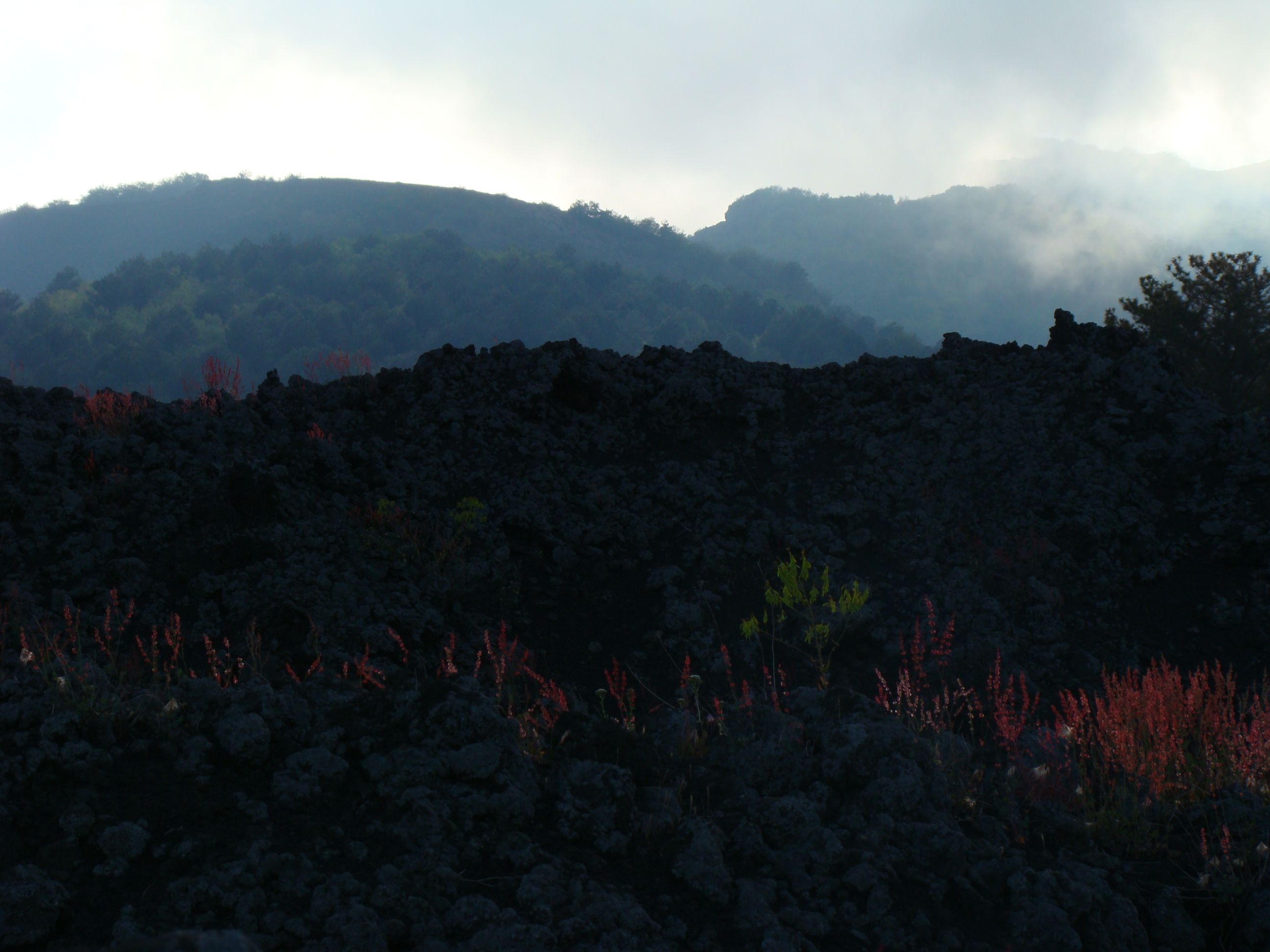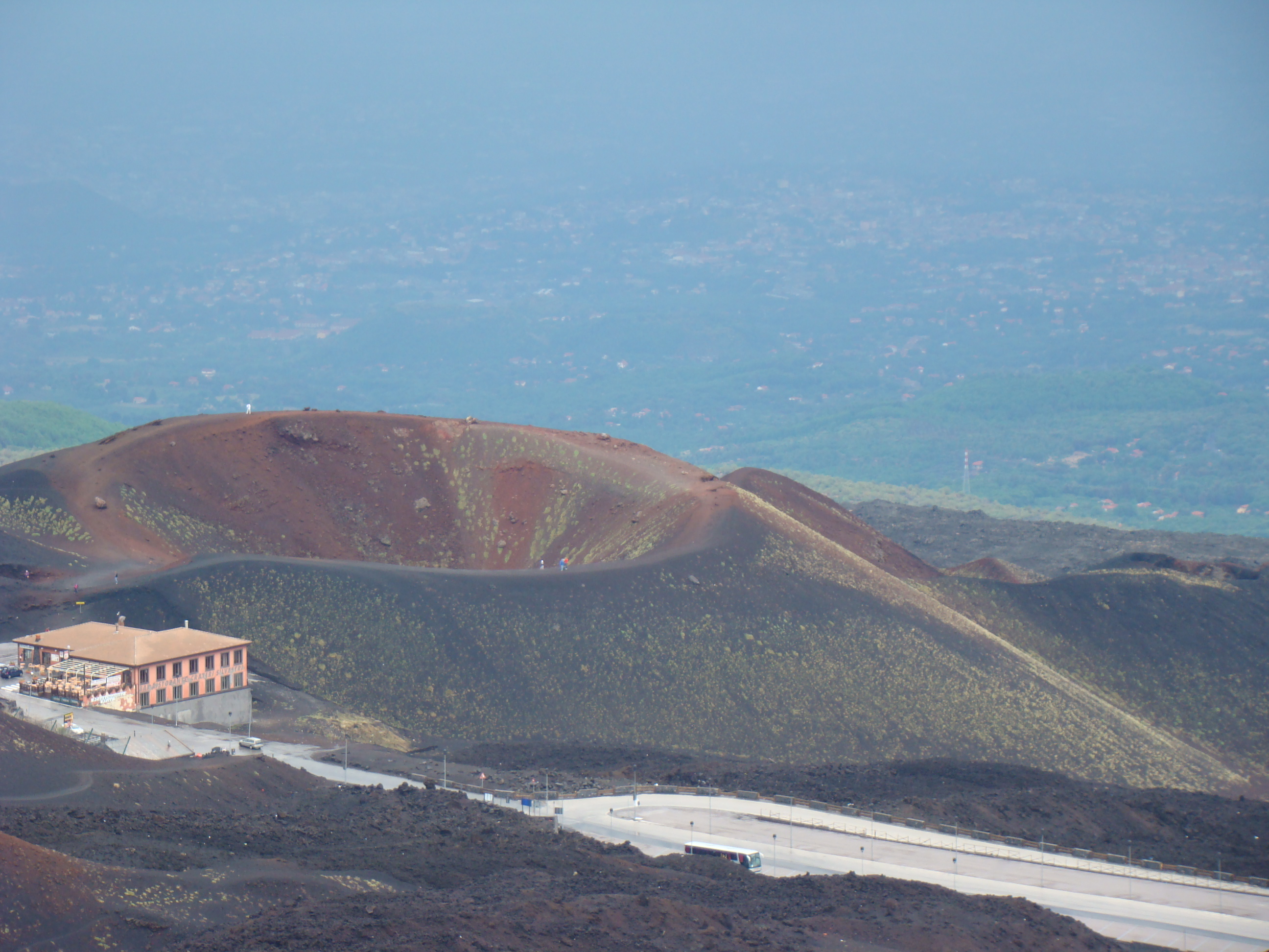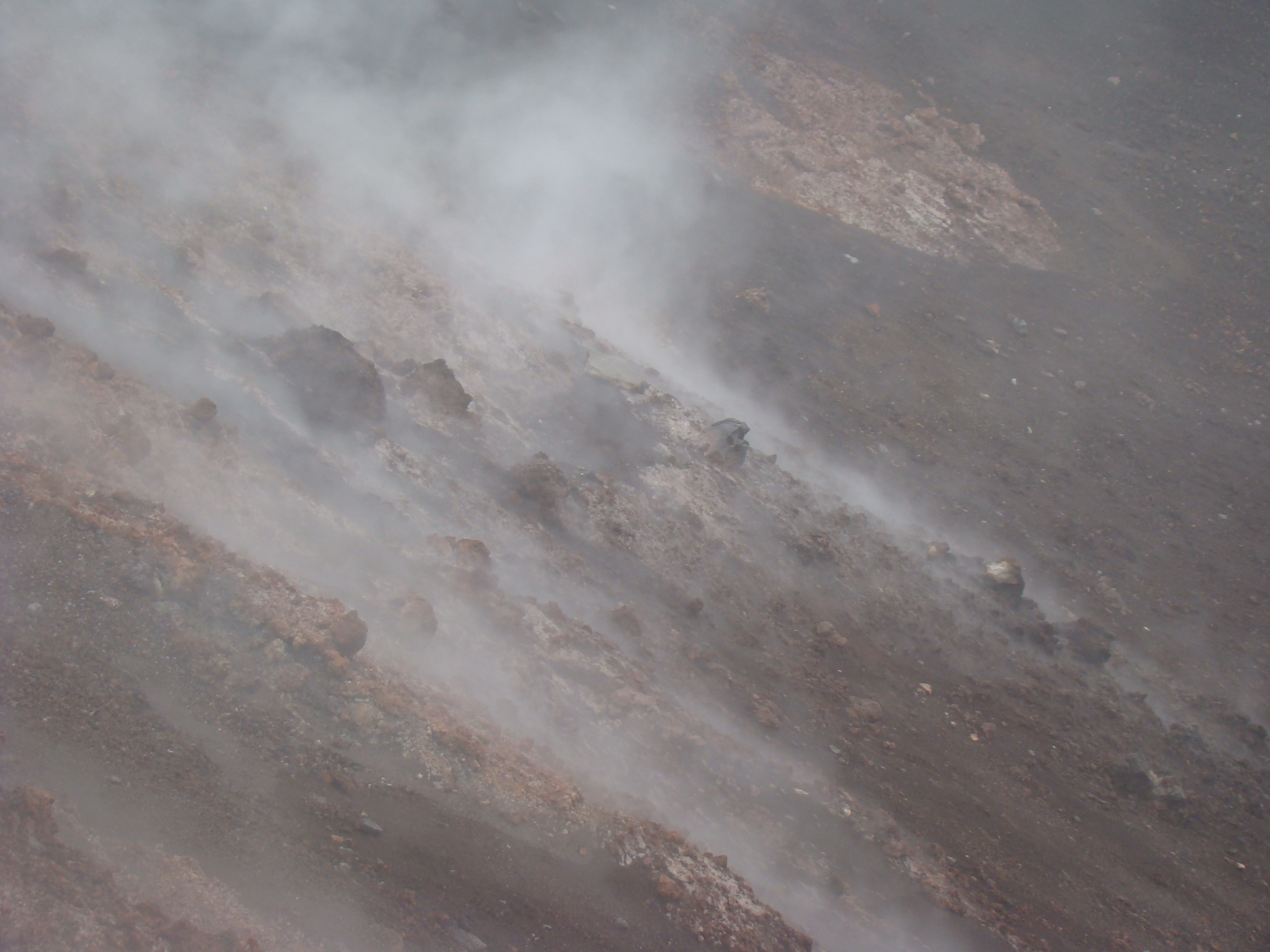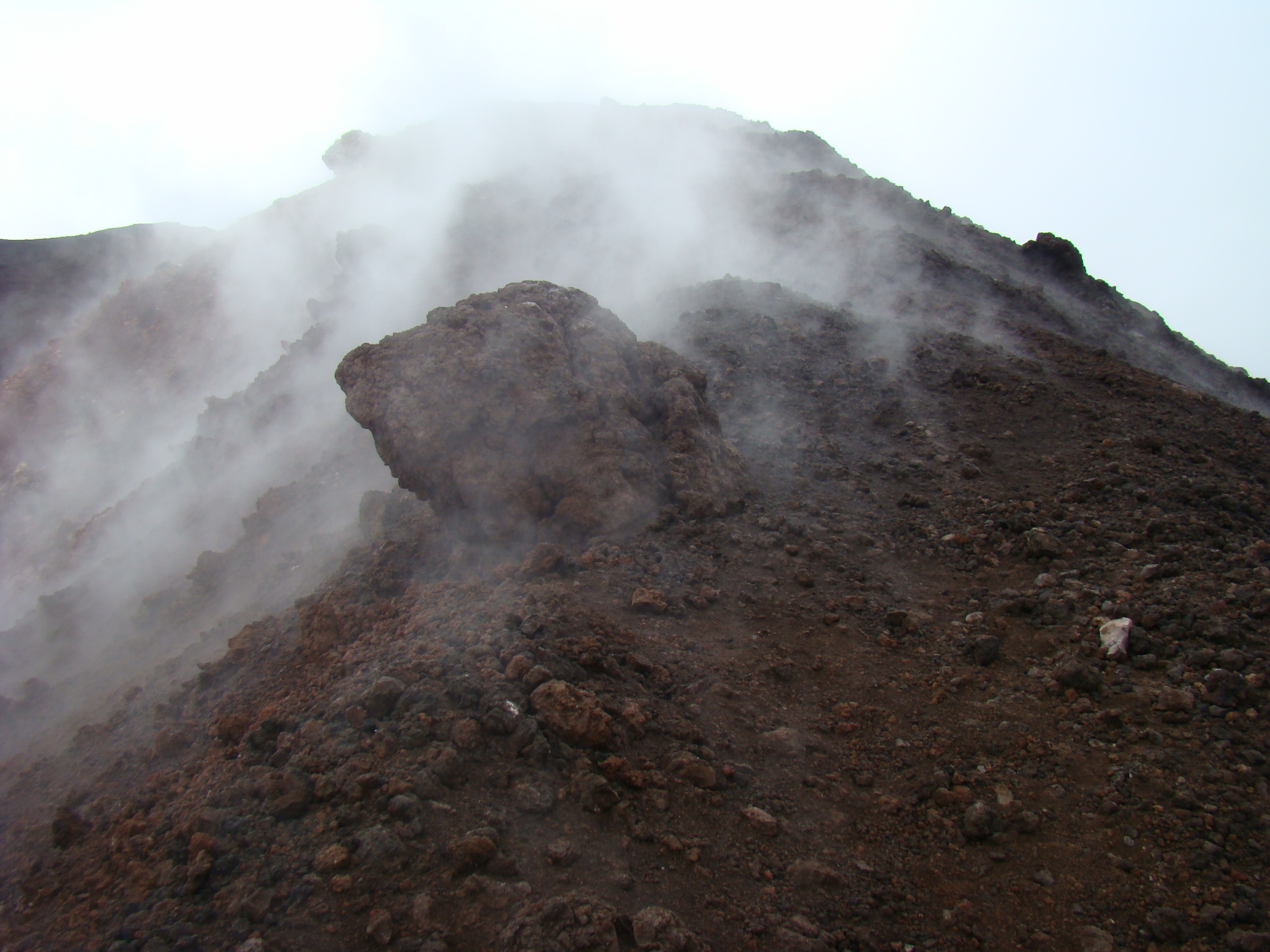 Le volcan cache bien son feu. Il en joue de manière si originale qu’il en déjoue la plupart du temps les humains. A notre départ du haut du Vésuve, un immense cratère sans feu avec quelques fumerolles et une polémique entre les vulcanologues sur la meilleure méthode de prévision des éruptions. Et ce choix semble encore plus difficile pour le Vésuve, qui de type explosif, serait encore plus imprévisible que les autres. Sa dernière explosion en 1944 a fait jaillir, comme la première historique qui a détruit Pompéi en 79 , une nuée ardente avec au moins autant de cendres, de pierres que de feu, ce qui est encore plus sournois. L’Etna est plus actif et tout aussi imprévisible. Autour des trois cratères centraux, surgissent régulièrement des irruptions et coulées de lave. Elles sont cependant détectables, paraît-il, deux ou trois jours avant. Les dernières en dates étaient du mois d’avril. Mais nous n’avons pas eu l’honneur d’être salué par un de ses beaux feux, qui ne sont pas commandés artificiellement. Nous n’avons pu voir que deux énormes foyers volcaniques culminant à plus de 1000 mètres pour le Vésuve, et de 3000 mètres pour l’Etna, avec des fumerolles. Mais pas de flammes.