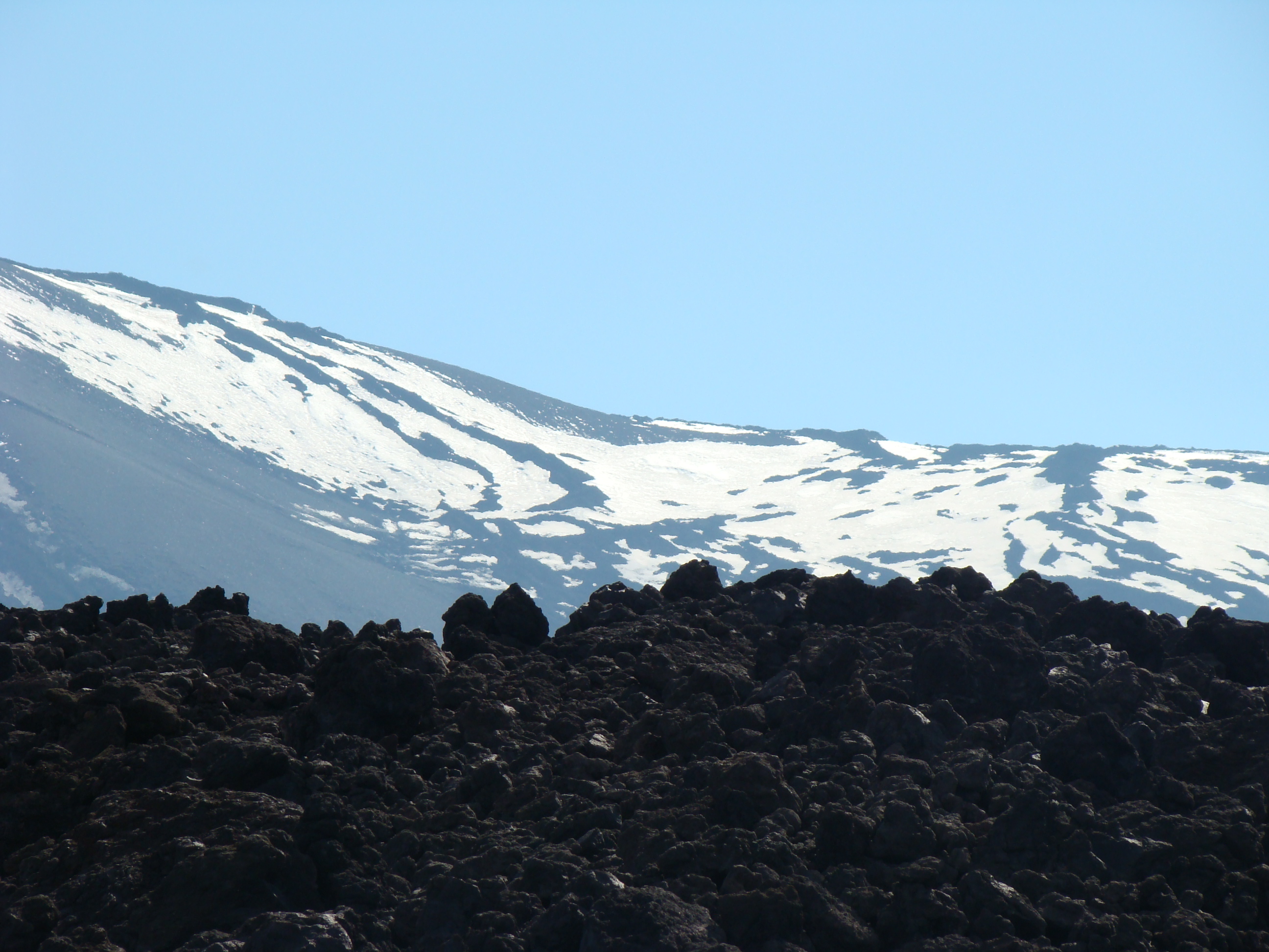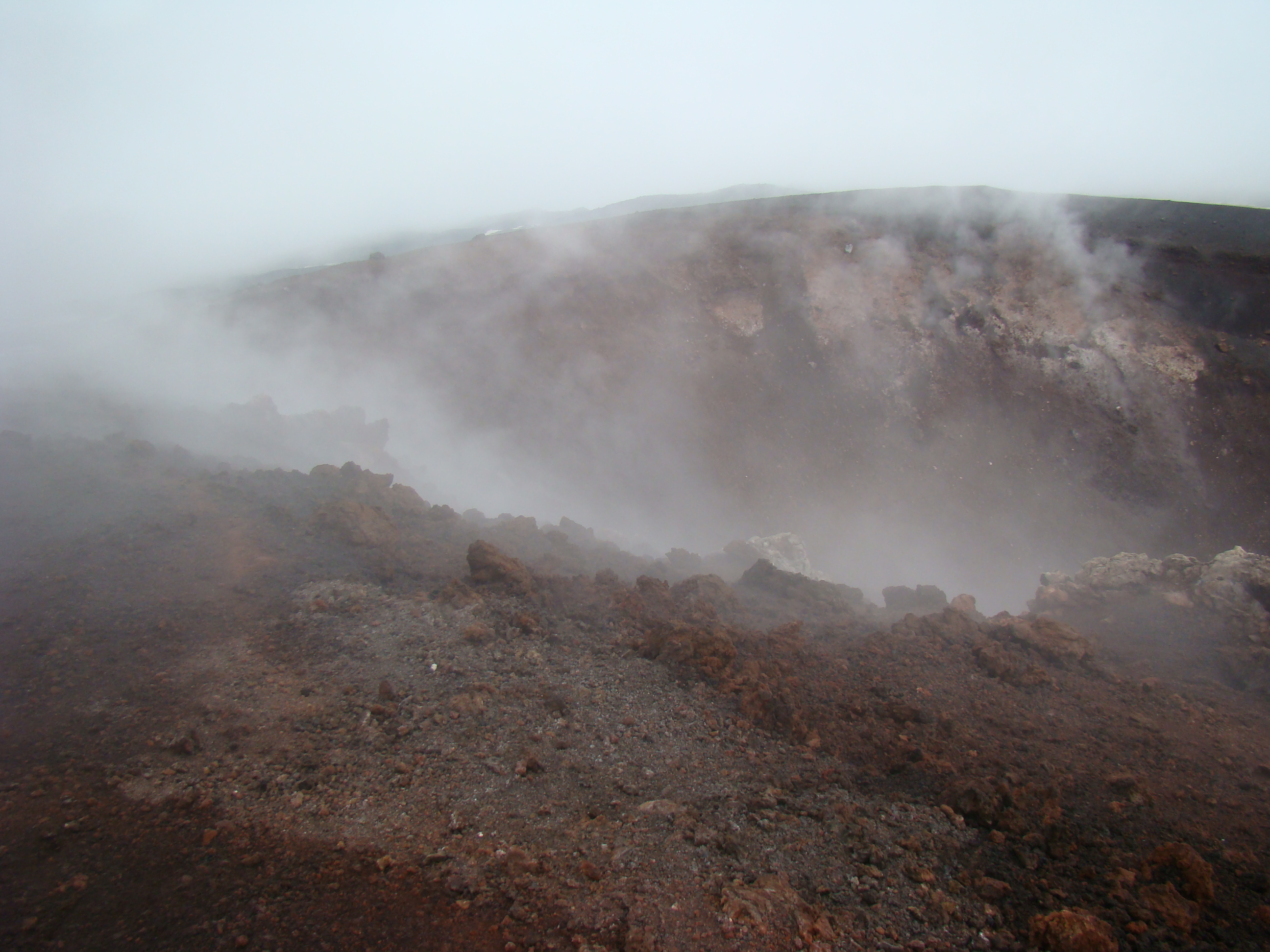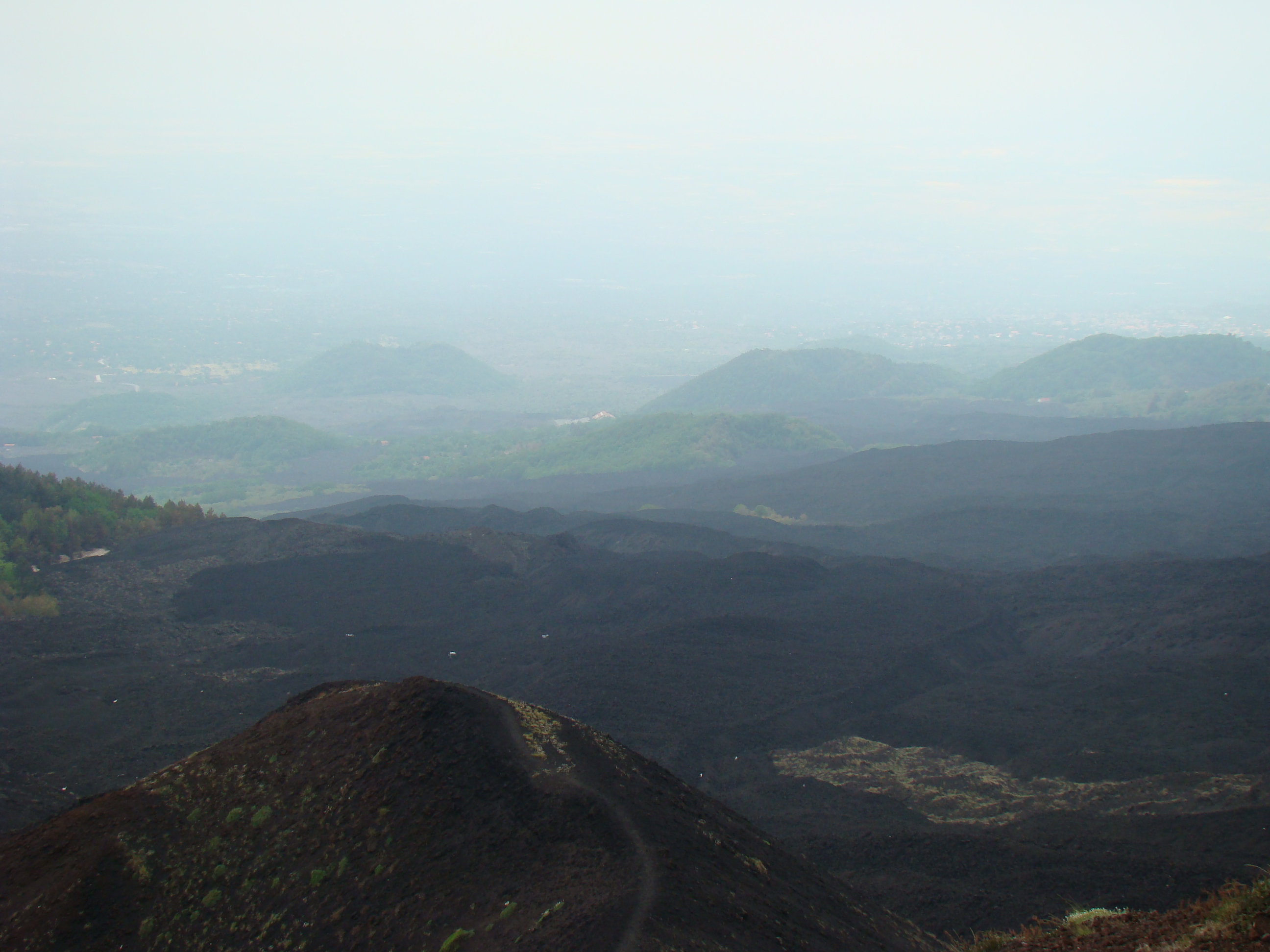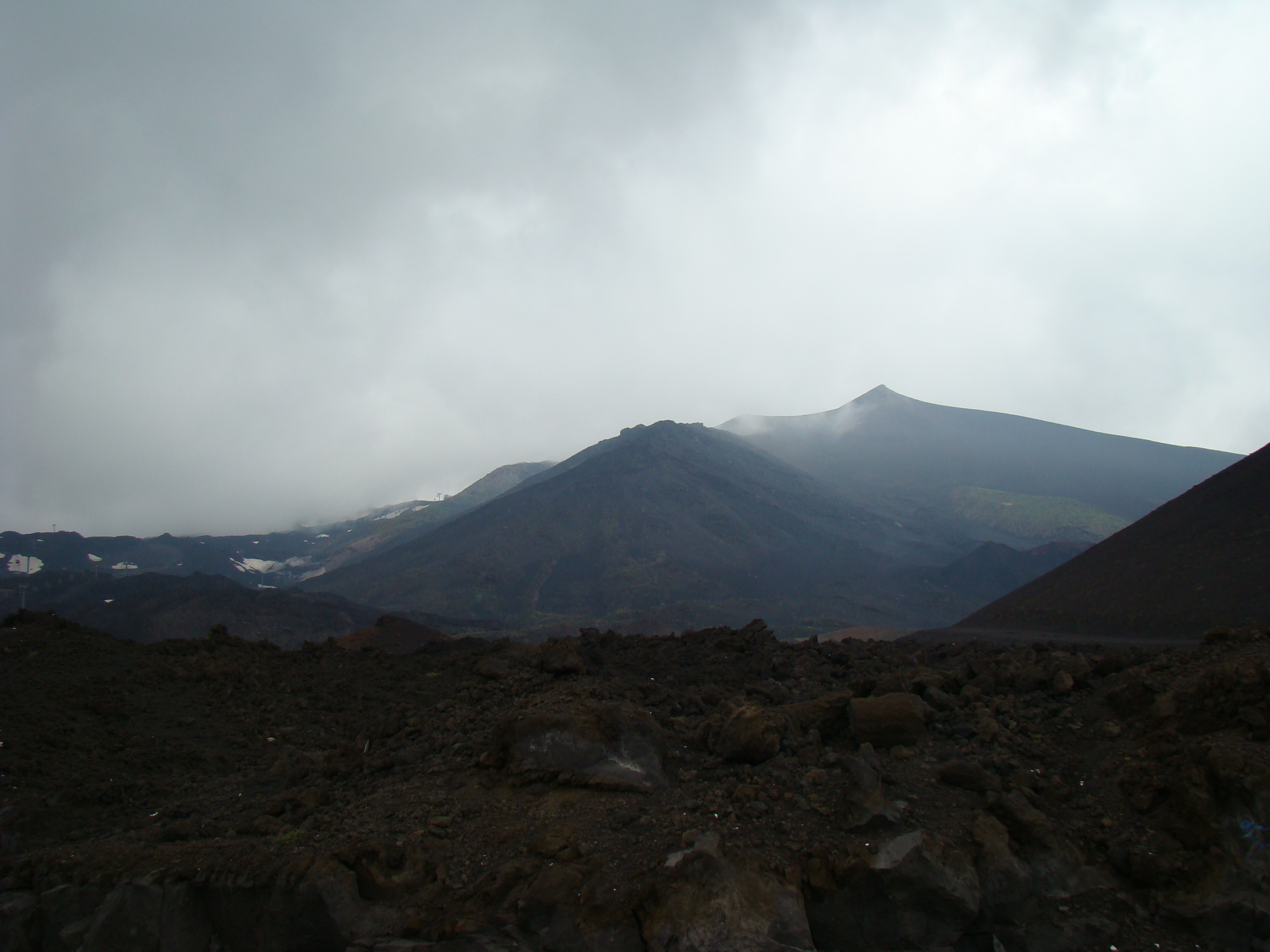 Le volcan cache bien son feu. Il en joue de manière si originale qu’il en déjoue la plupart du temps les humains. A notre départ du haut du Vésuve, un immense cratère sans feu avec quelques fumerolles et une polémique entre les vulcanologues sur la meilleure méthode de prévision des éruptions. Et ce choix semble encore plus difficile pour le Vésuve, qui de type explosif, serait encore plus imprévisible que les autres. Sa dernière explosion en 1944 a fait jaillir, comme la première historique qui a détruit Pompéi en 79 , une nuée ardente avec au moins autant de cendres, de pierres que de feu, ce qui est encore plus sournois. L’Etna est plus actif et tout aussi imprévisible. Autour des trois cratères centraux, surgissent régulièrement des irruptions et coulées de lave. Elles sont cependant détectables, paraît-il, deux ou trois jours avant. Les dernières en dates étaient du mois d’avril. Mais nous n’avons pas eu l’honneur d’être salué par un de ses beaux feux, qui ne sont pas commandés artificiellement. Nous n’avons pu voir que deux énormes foyers volcaniques culminant à plus de 1000 mètres pour le Vésuve, et de 3000 mètres pour l’Etna, avec des fumerolles. Mais pas de flammes.