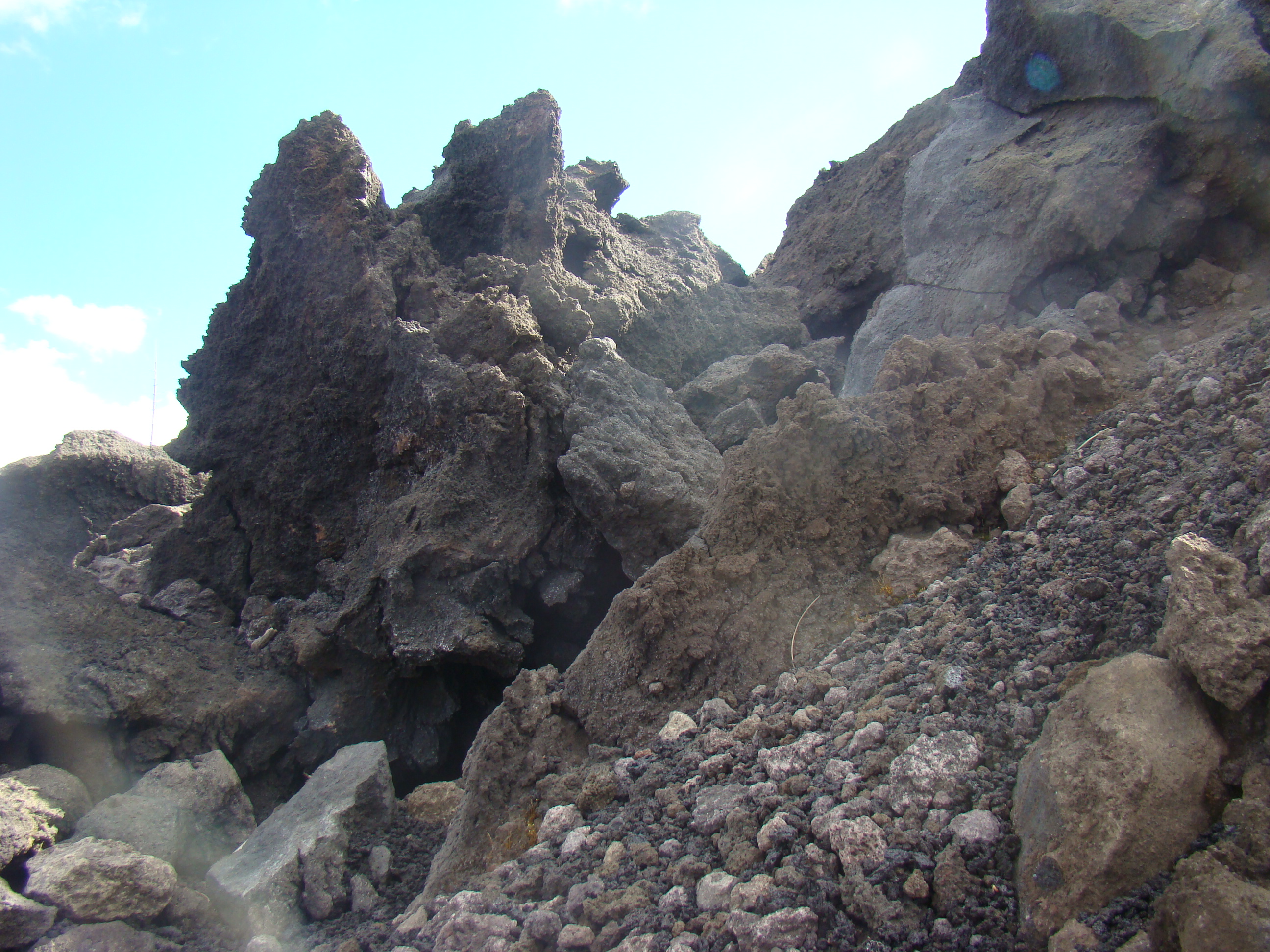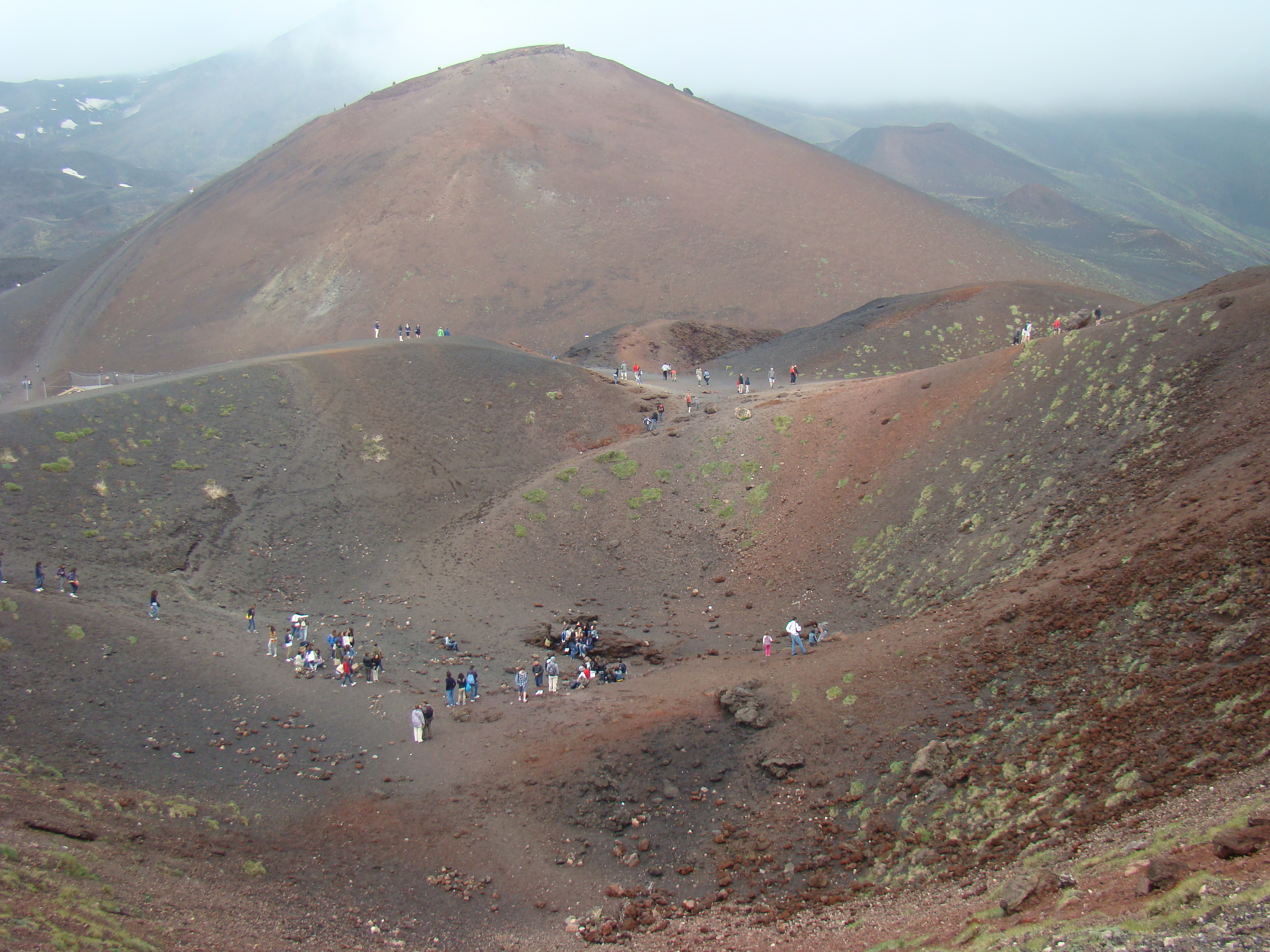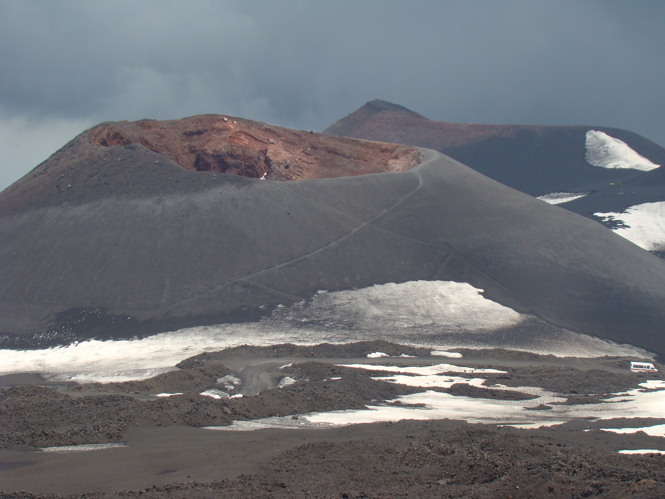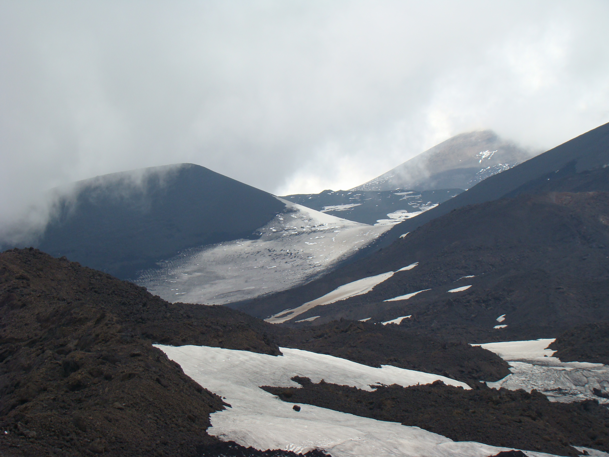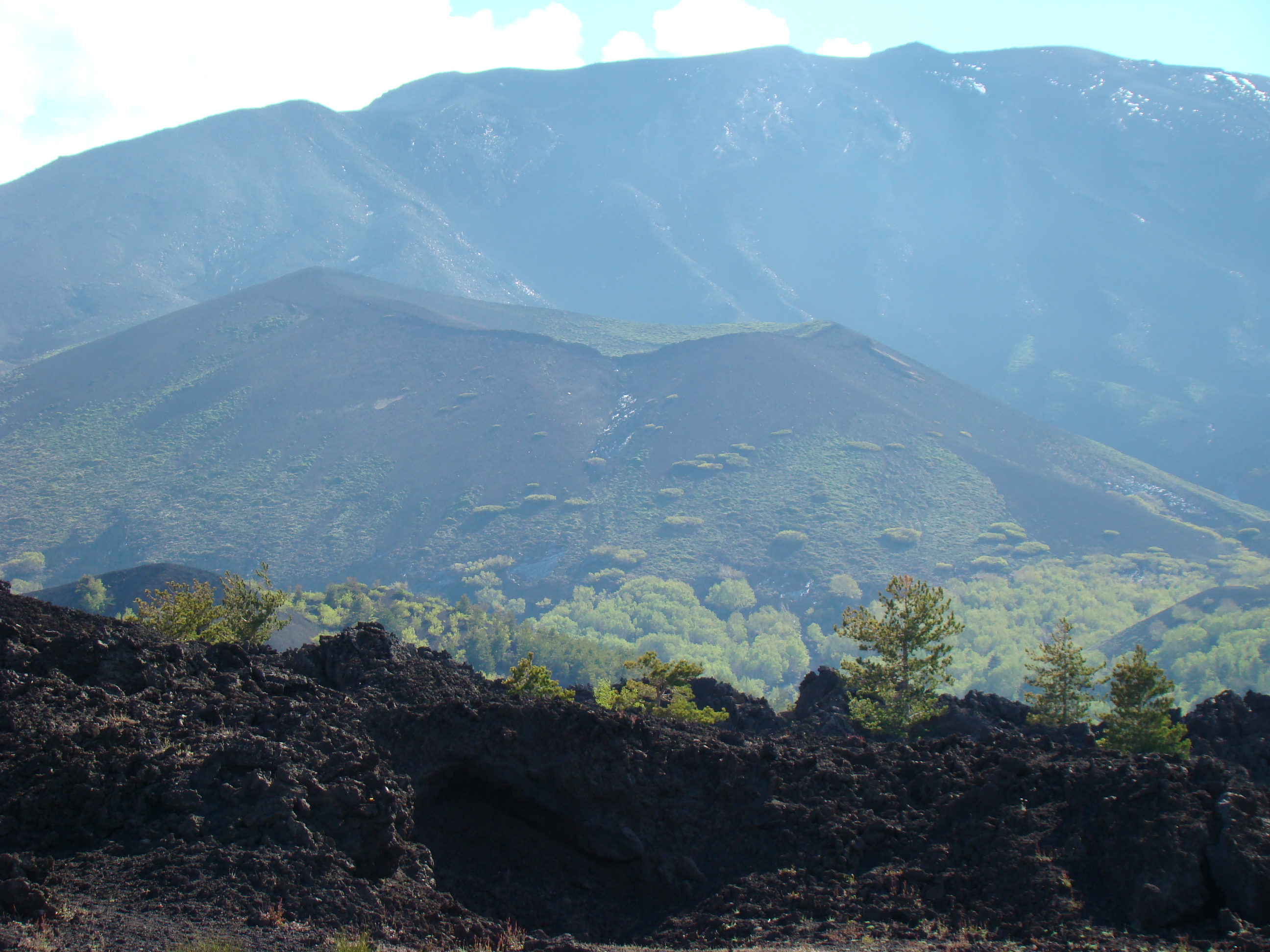 Le volcan cache bien son feu. Il en joue de manière si originale qu’il en déjoue la plupart du temps les humains. A notre départ du haut du Vésuve, un immense cratère sans feu avec quelques fumerolles et une polémique entre les vulcanologues sur la meilleure méthode de prévision des éruptions. Et ce choix semble encore plus difficile pour le Vésuve, qui de type explosif, serait encore plus imprévisible que les autres. Sa dernière explosion en 1944 a fait jaillir, comme la première historique qui a détruit Pompéi en 79 , une nuée ardente avec au moins autant de cendres, de pierres que de feu, ce qui est encore plus sournois. L’Etna est plus actif et tout aussi imprévisible. Autour des trois cratères centraux, surgissent régulièrement des irruptions et coulées de lave. Elles sont cependant détectables, paraît-il, deux ou trois jours avant. Les dernières en dates étaient du mois d’avril. Mais nous n’avons pas eu l’honneur d’être salué par un de ses beaux feux, qui ne sont pas commandés artificiellement. Nous n’avons pu voir que deux énormes foyers volcaniques culminant à plus de 1000 mètres pour le Vésuve, et de 3000 mètres pour l’Etna, avec des fumerolles. Mais pas de flammes.