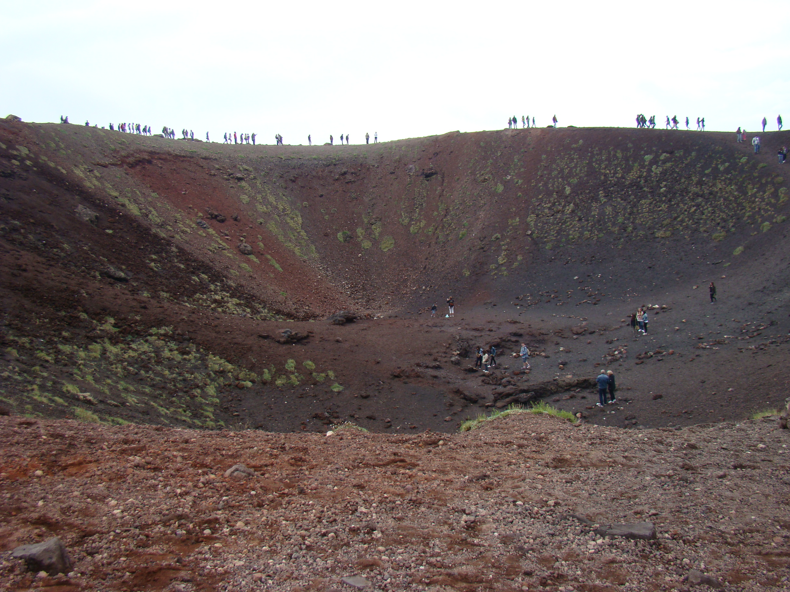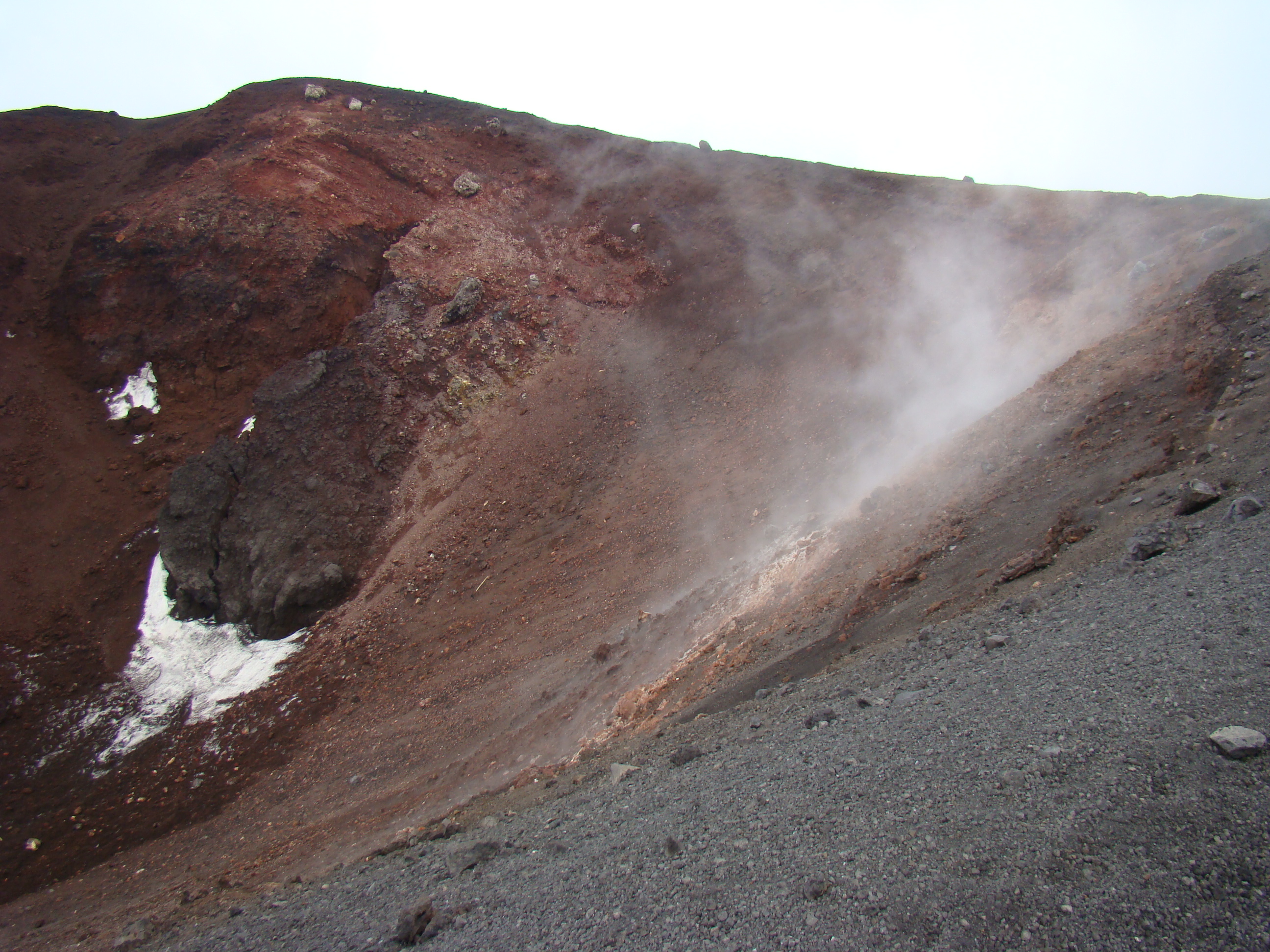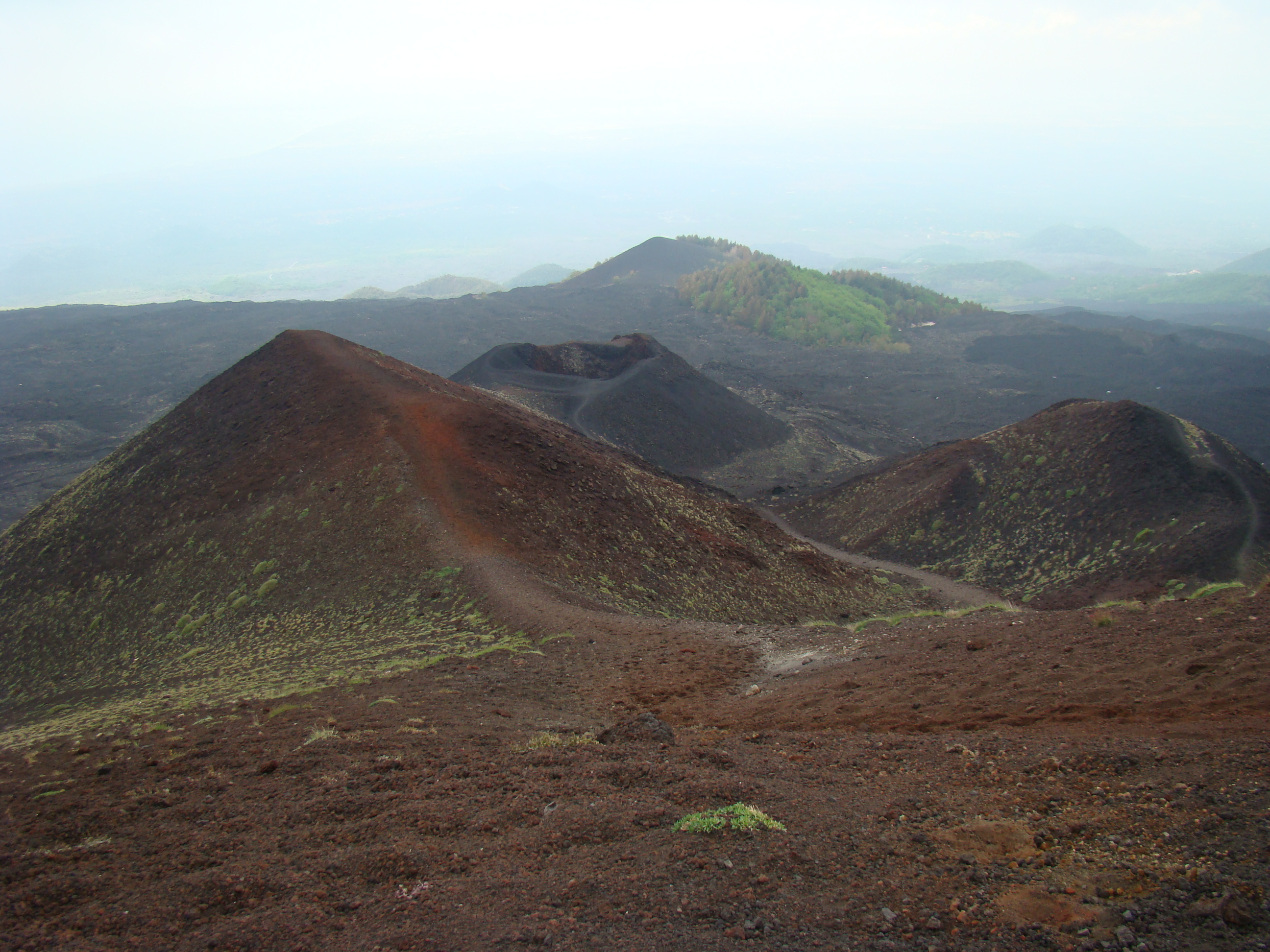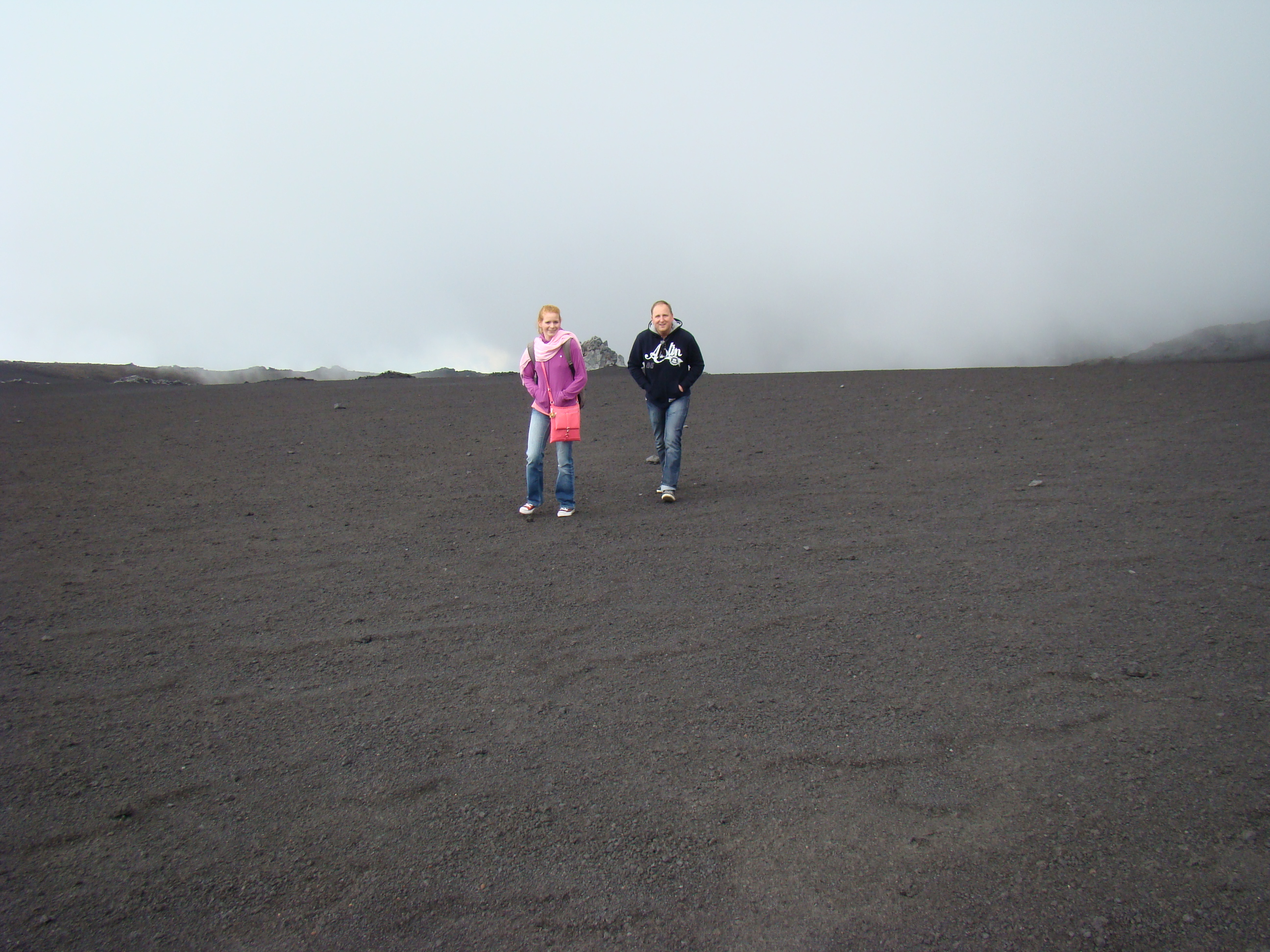 Le volcan cache bien son feu. Il en joue de manière si originale qu’il en déjoue la plupart du temps les humains. A notre départ du haut du Vésuve, un immense cratère sans feu avec quelques fumerolles et une polémique entre les vulcanologues sur la meilleure méthode de prévision des éruptions. Et ce choix semble encore plus difficile pour le Vésuve, qui de type explosif, serait encore plus imprévisible que les autres. Sa dernière explosion en 1944 a fait jaillir, comme la première historique qui a détruit Pompéi en 79 , une nuée ardente avec au moins autant de cendres, de pierres que de feu, ce qui est encore plus sournois. L’Etna est plus actif et tout aussi imprévisible. Autour des trois cratères centraux, surgissent régulièrement des irruptions et coulées de lave. Elles sont cependant détectables, paraît-il, deux ou trois jours avant. Les dernières en dates étaient du mois d’avril. Mais nous n’avons pas eu l’honneur d’être salué par un de ses beaux feux, qui ne sont pas commandés artificiellement. Nous n’avons pu voir que deux énormes foyers volcaniques culminant à plus de 1000 mètres pour le Vésuve, et de 3000 mètres pour l’Etna, avec des fumerolles. Mais pas de flammes.
