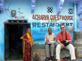 Malgré les trop nombreuses sollicitations de jeunes garçons qui veulent nous servir de guides, nous arrivons à visiter le centra ancien et découvrons de magnifiques maisons, malheureusement pas assez restaurées et puis il y a toute cette vie dans la rue qui est trop difficile à décrire : les commerces, les animaux, le défilé de saris, les artisans que l’on ne voit plus chez nous, tous ouverts sur la rue : les tailleurs, les coiffeurs-barbier, les fabricants de petits bijoux, les vendeurs de gamelles, de tissus… (d’ailleurs Marc a fait faire l’ourlet de son pantalon en moins de 5 minutes pour 50 roupies soit moins de 40cts !)
