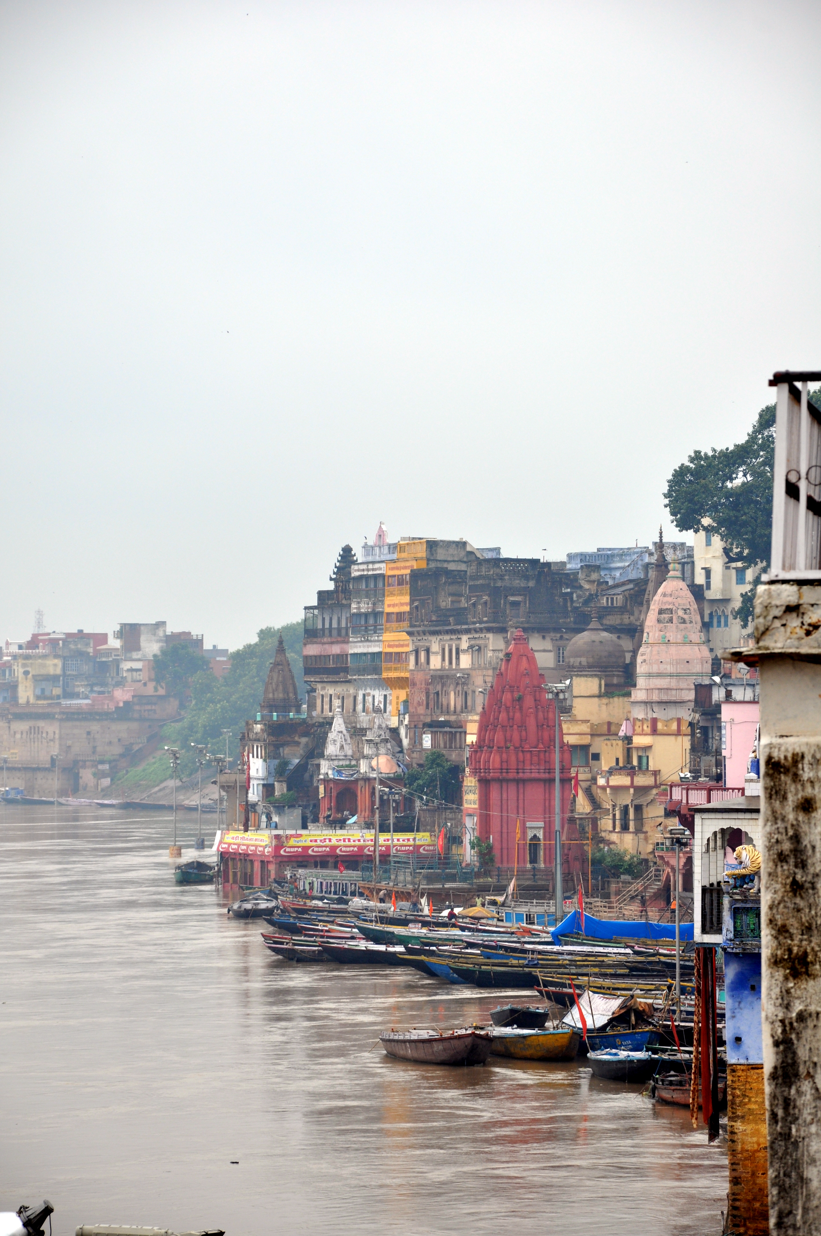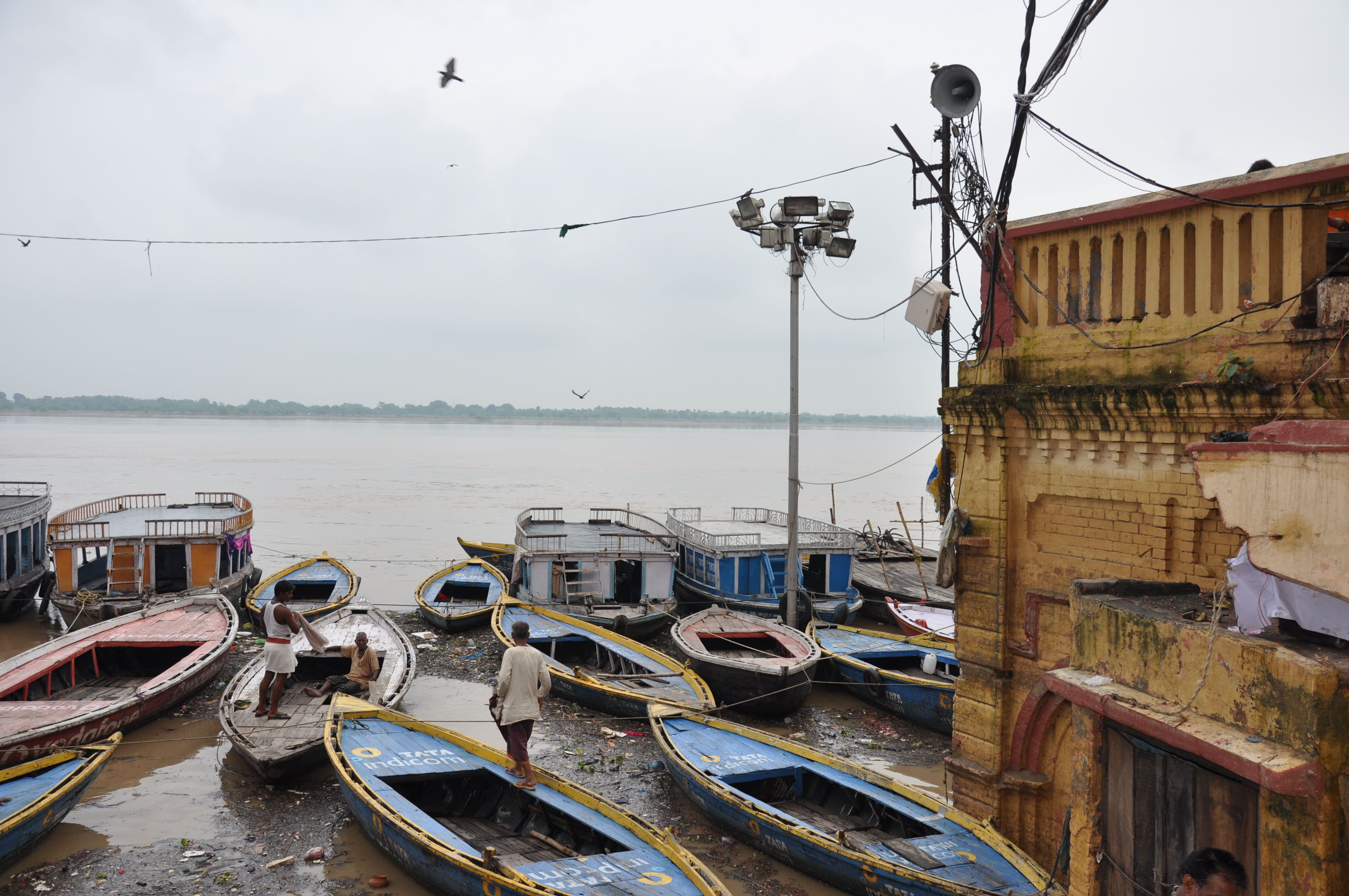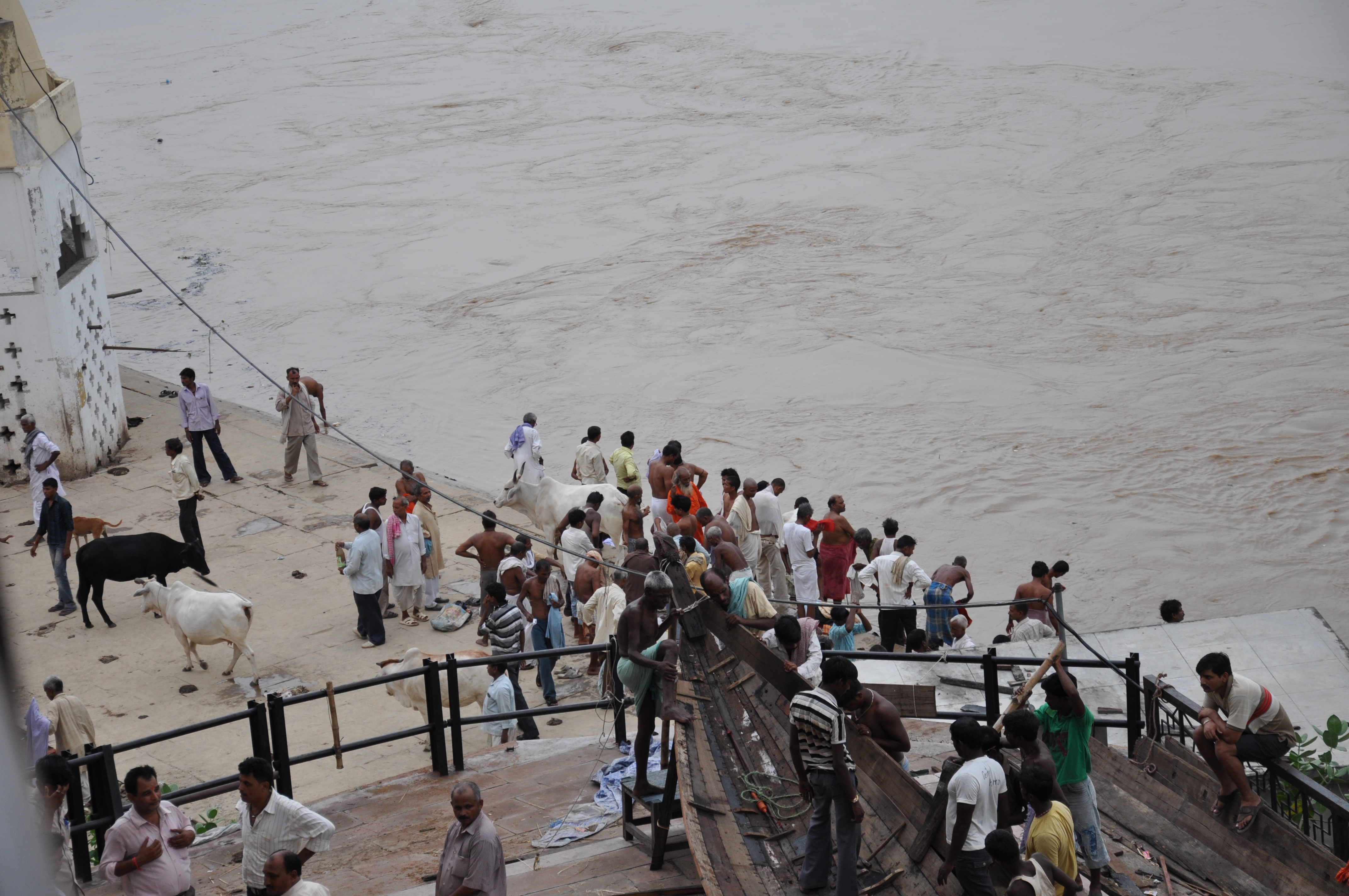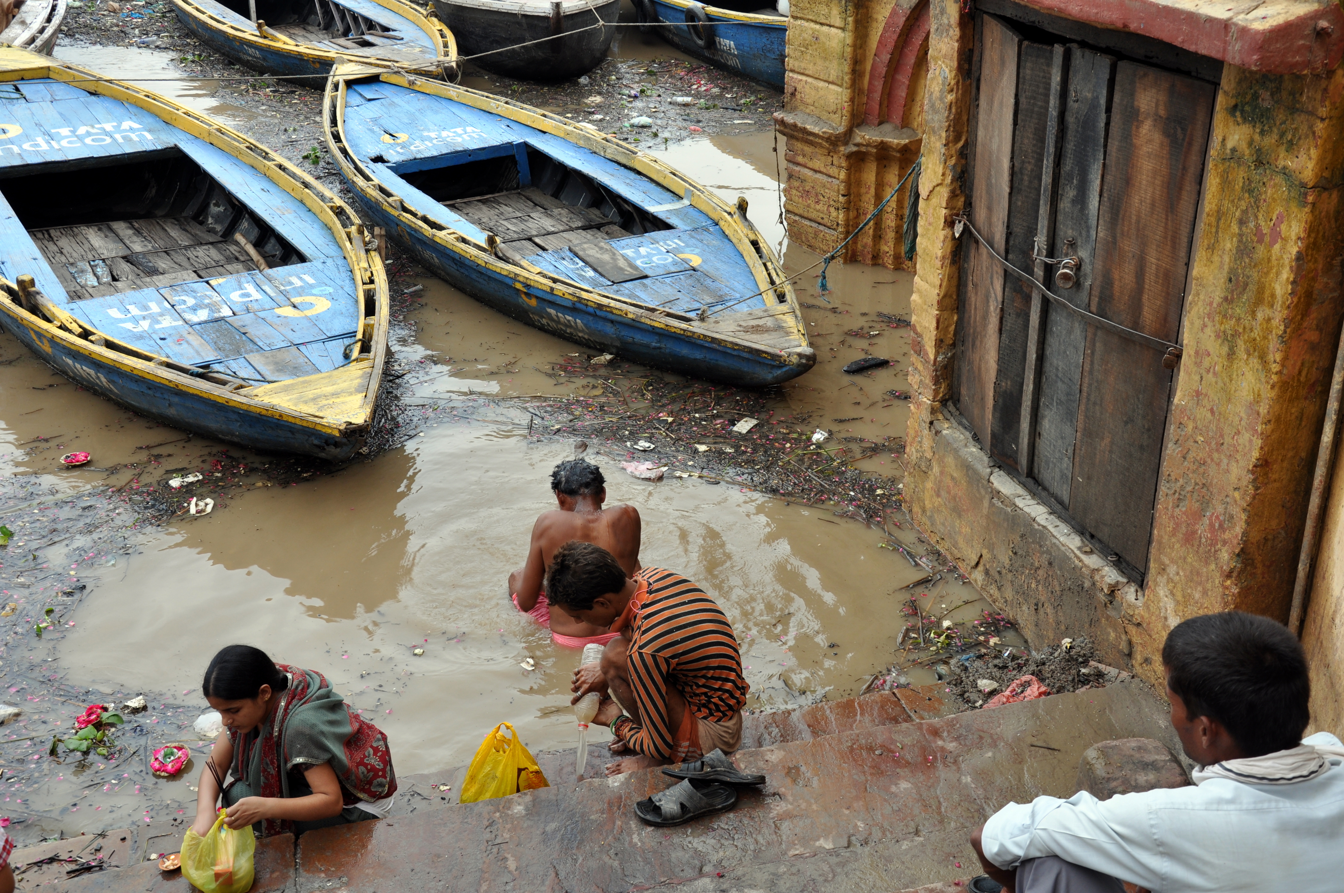 Nous sommes heureux de découvrir aujourd'hui des ruelles beaucoup plus propres (nous avons eu la malchance d'arriver hier après 2 jours fériés liés à l'indépendance de l'Inde, c'est pourquoi les déchets n'avaient pas été enlevés !). Par contre, nous sommes déçus que les trois quart des ghats soient inondés.