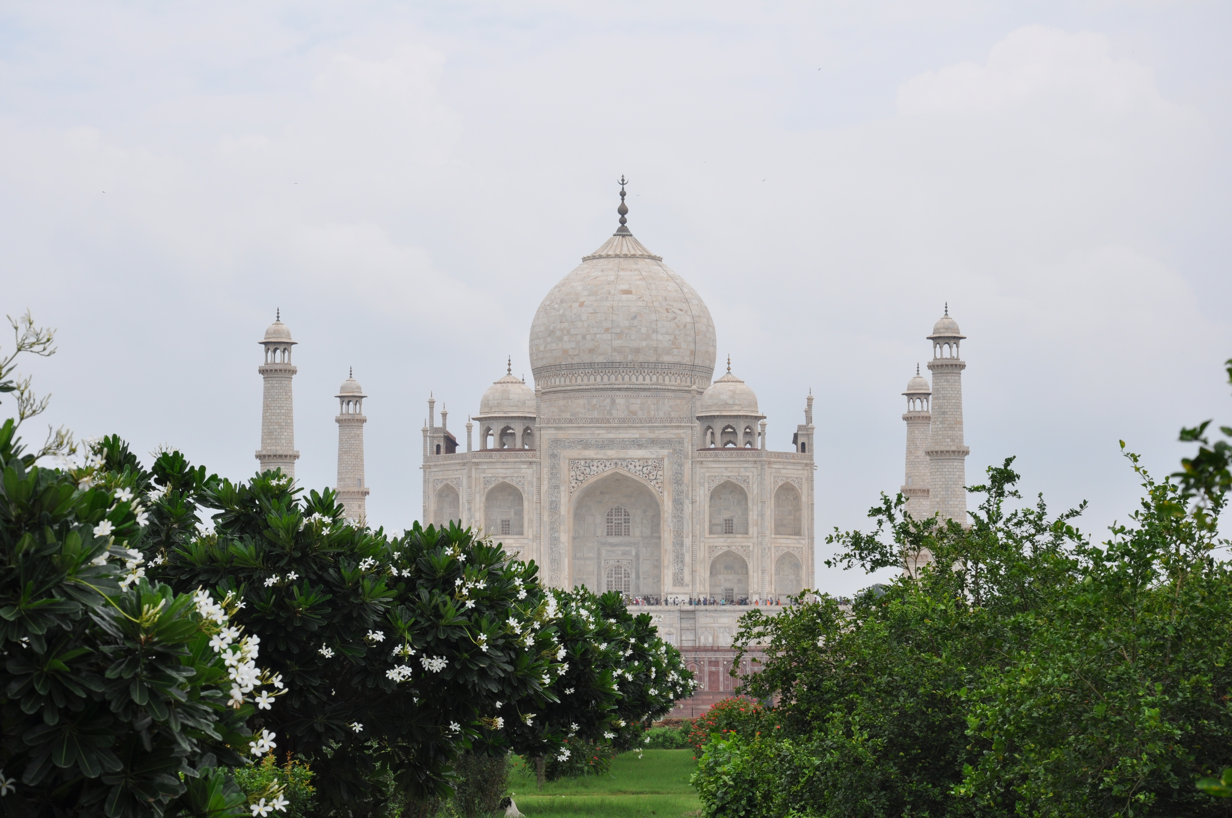 Nous franchissons la porte Est de l’enceinte et marchons jusqu’à découvrir le fameux, le majestueux, le grandiose mausolée qui fut édifié par l’empereur Shah Jahan pour recevoir le corps de sa deuxième épouse dont il était fou amoureux (belle preuve d’amour !).